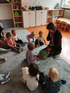 Czytanie w żłobku opublikowany wAktualności, Lekcje biblioteczne w 22 września 2025 przez Redaktor Udostępnij Tweet Na kolejnym Czytaniu w Żłobku Publicznym w Bogumiłowicach dzieci wysłuchały wiersza o owocach i warzywach.