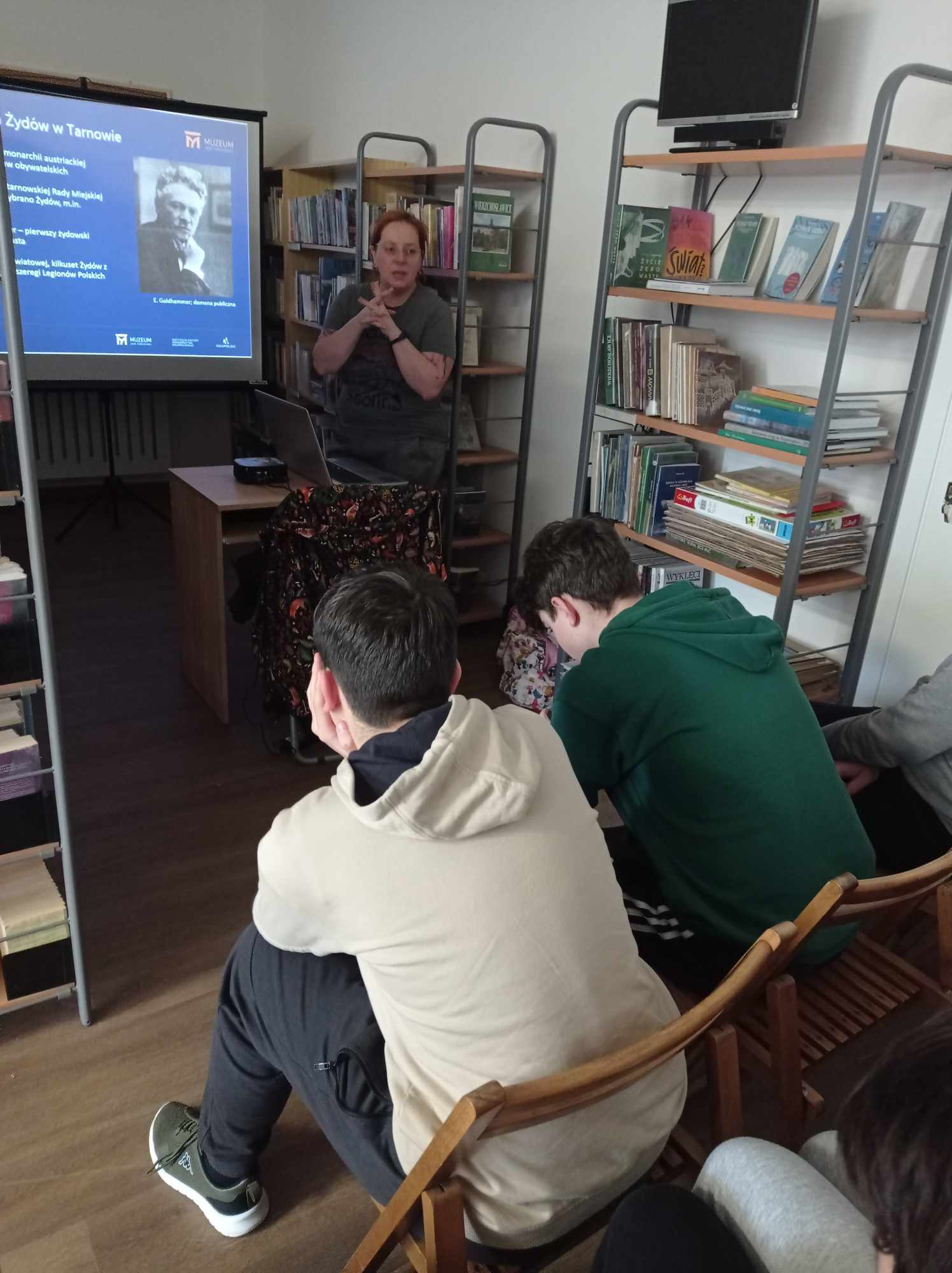 W poniedziałek 13 stycznia 2025 roku bibliotekę w Łętowicach odwiedziła pani Dorota Lewicka – pracownik Muzeum Ziemi Tarnowskiej. Pani Dorota wygłosiła prelekcję na temat mniejszości narodowych w przedwojennym Tarnowie. Uczestnicy poznali wielokulturowy charakter miasta, w którym przed II wojną światową niemal połowę mieszkańców stanowili Żydzi. Społeczność żydowska miała znaczący wpływ na rozwój Tarnowa – od życia gospodarczego po kulturę i religię, poznali także ich  tragiczne losy podczas Holokaustu. Drugim ważnym wątkiem była obecność Romów, którzy również stanowili część wielokulturowego krajobrazu Małopolski. Nie zabrakło także muzułmańskiego akcentu w historii Tarnowa związanego z  Mauzoleum generała Józefa Bema. Uczestnicy dowiedzieli się więcej o oryginalnym grobowcu, który jest hołdem dla bohatera Polski i Węgier oraz symbolem międzynarodowych związków miasta. Mieli okazję zobaczyć  unikalne stare fotografie dokumentujące pozostałości architektoniczne i przedwojenną topografie Tarnowa.