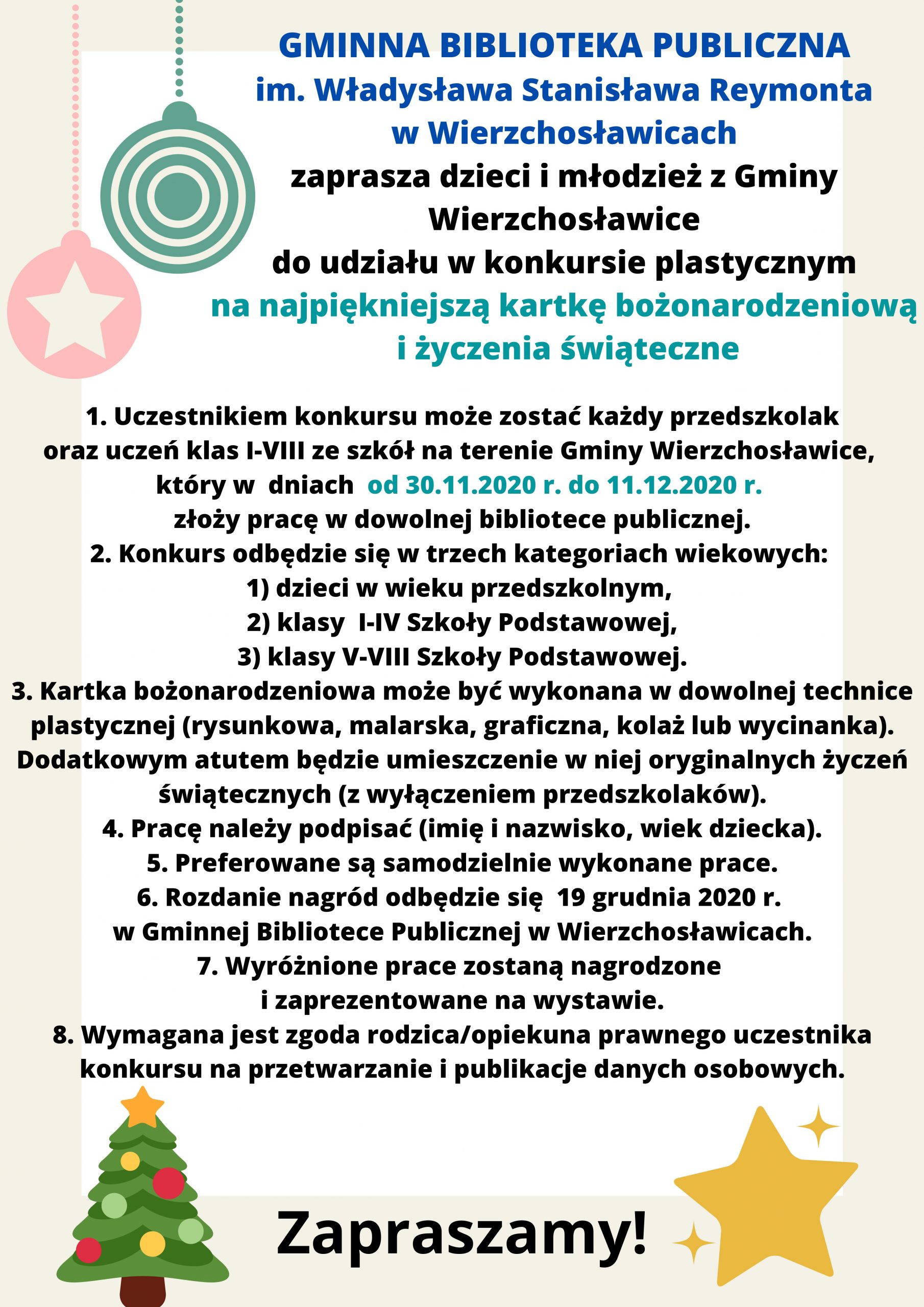 Serdecznie zapraszamy dzieci i młodzież w wieku 3-15 lat do udziału w świątecznym konkursie plastycznym ![]()