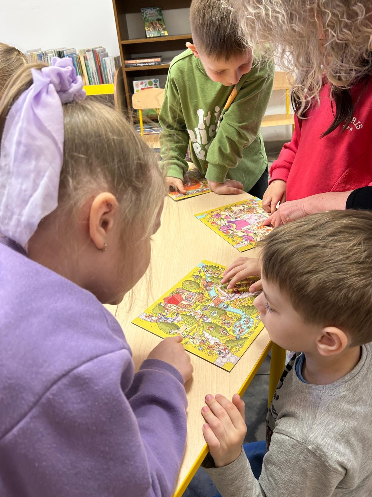 Bajki i baśnie były tematem przewodnim dzisiejszego spotkania w bibliotece, w którym uczestniczyła Grupa „Pracowitych Pszczółek” z Niepubliczne Przedszkole Słoneczko w Wierzchosławicach Bajka kamishibai „Noc w bibliotece” była ciekawym wprowadzeniem w świat wspaniałych historii i ulubionych baśniowych postaci. Dzieci z wielką ochotą przeglądnęły książeczki w dziale dziecięcym, a na zakończenie nie lada gratką była dla nich gra w wyszukiwanie zatytułowana „W krainie baśni”.