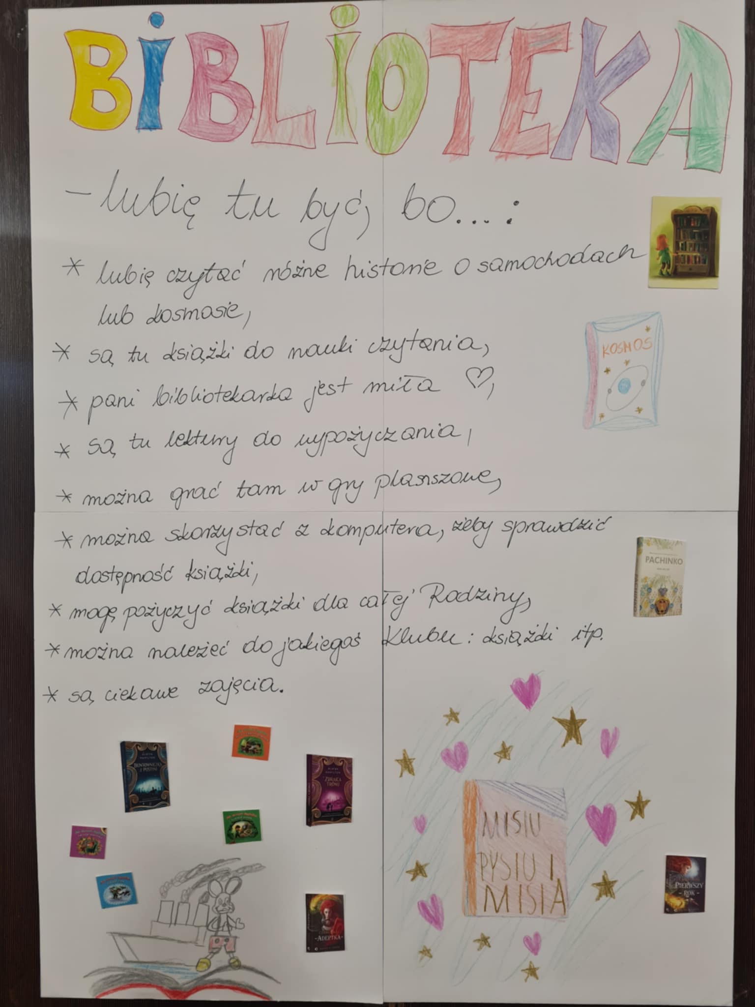 Razem z dziećmi z Placówki Wsparcia Dziennego w Mikołajowicach, bibliotekarka w naszej filii poszukiwała takich argumentów. Znalazło się ich całkiem sporo, ale myślimy, że spokojnie można by je jeszcze dopisać!