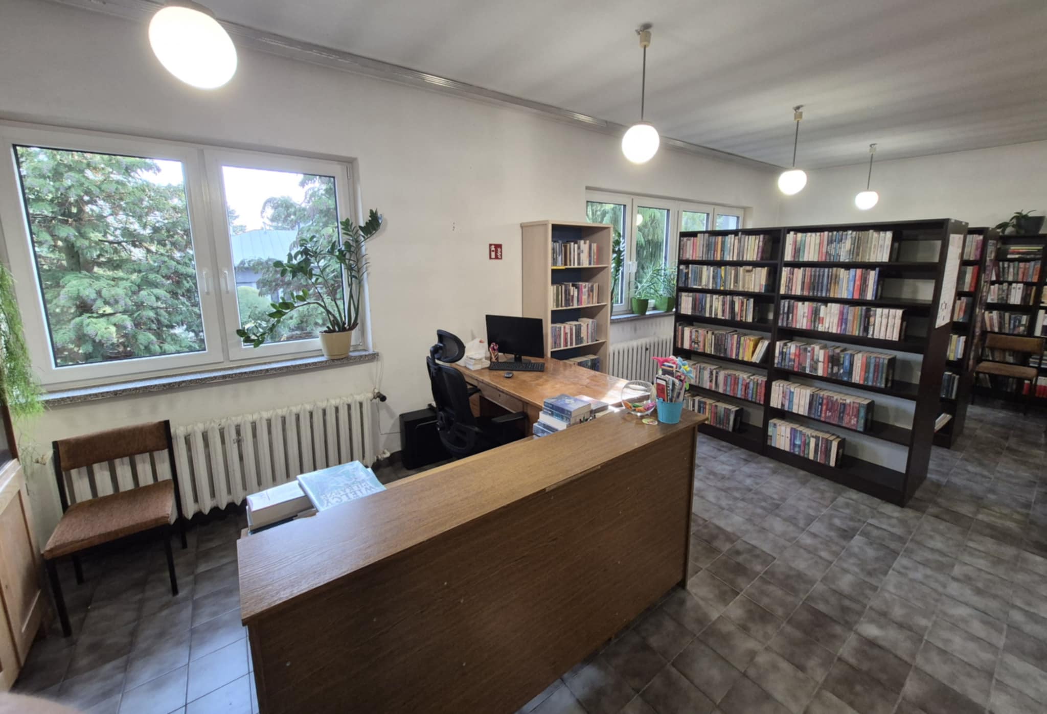 Wnętrze biblioteki w Mikołajowicach. Lada biblioteczna przy oknie, obok regały z książkamiOkna w bibliotece. Na parapecie stoją kwiaty zieloneWnętrze biblioteki w Mikołajowicach. Lada biblioteczna przy oknie, obok regały z książkamiDział dziecięcy biblioteki. Pod ścianami stoją regały z książkami, przed nimi stoliczek i krzesełkaDział kryminału. Pod ścianą stoją regał z książkami, po prawej stronie znajdują się drzwi wejściowe. Na regale stoi lampka nocnaOkna w bibliotece. Na parapecie stoją kwiaty zieloneOkna w bibliotece. Na parapecie stoją kwiaty zieloneWnętrze biblioteki w Mikołajowicach. Lada biblioteczna przy oknie, obok regały z książkami