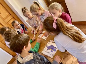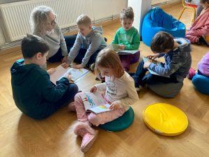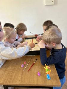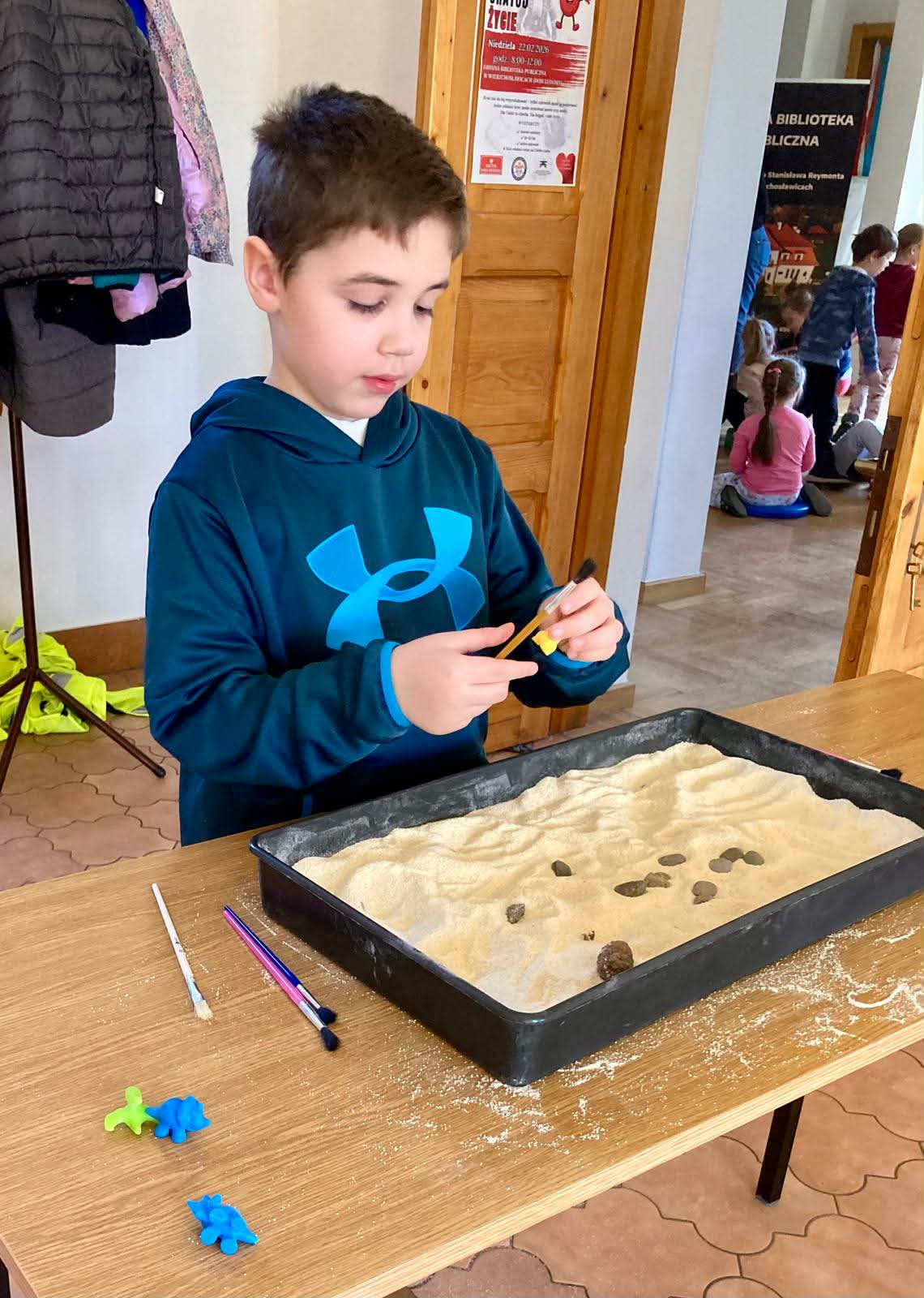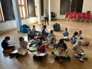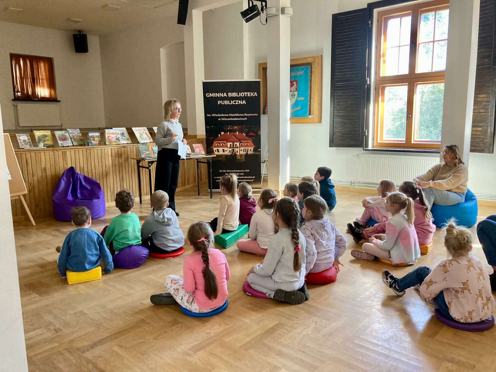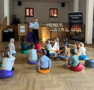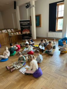 Tydzień z dinozaurami w bibliotece zakończyło spotkanie z dziećmi z Przedszkola Publicznego w Wierzchosławicach. Wczoraj odwiedziły nas Tygryski i Misie, które z wielkim zainteresowaniem wkroczyły w świat dinozaurów. 🦖🦕 Wykorzystanie różnych technik kreatywnych, a także literatura przeznaczona dla najmłodszych sprawiła, że czas w bibliotece minął bardzo przyjemnie 🙂