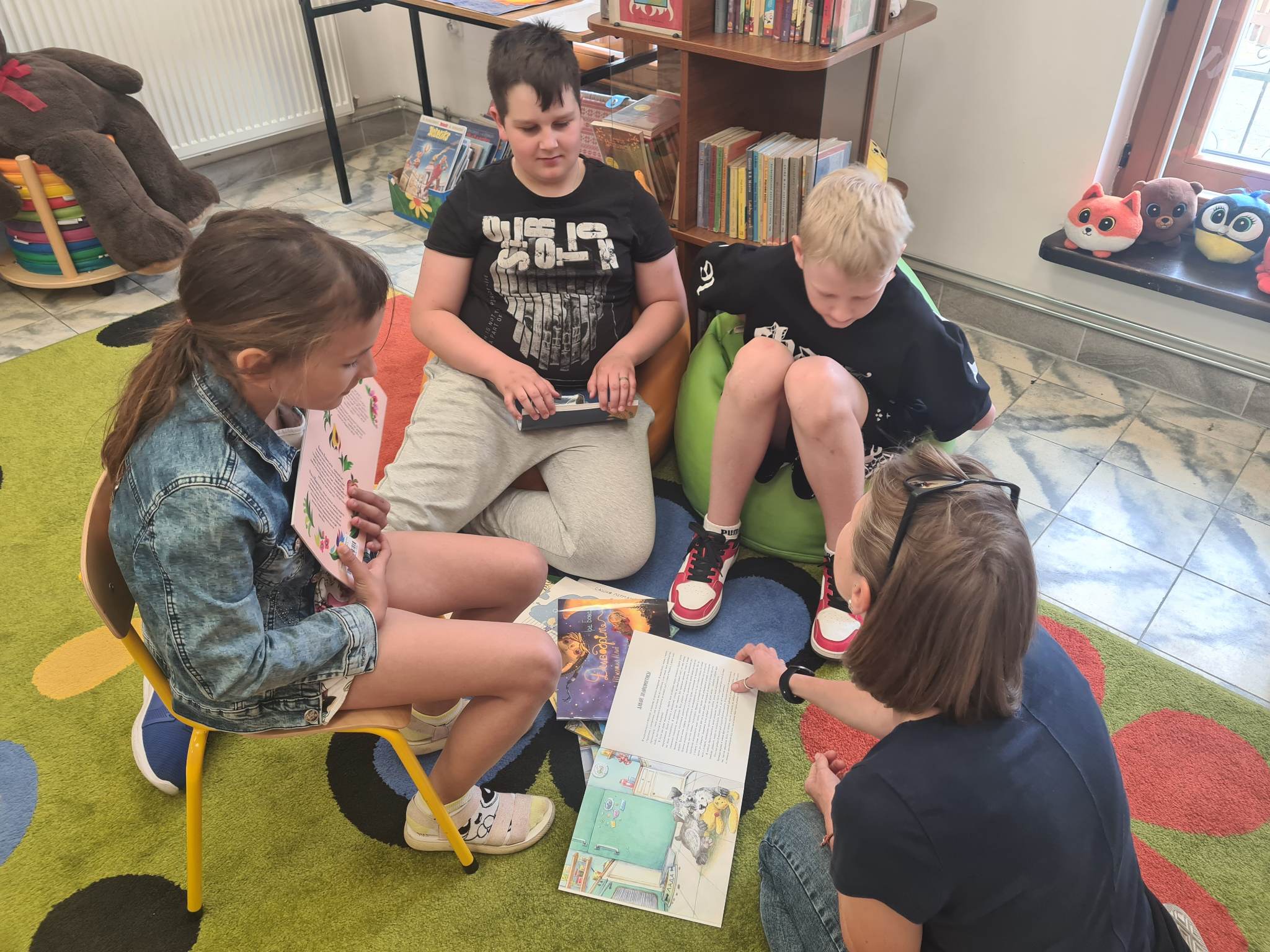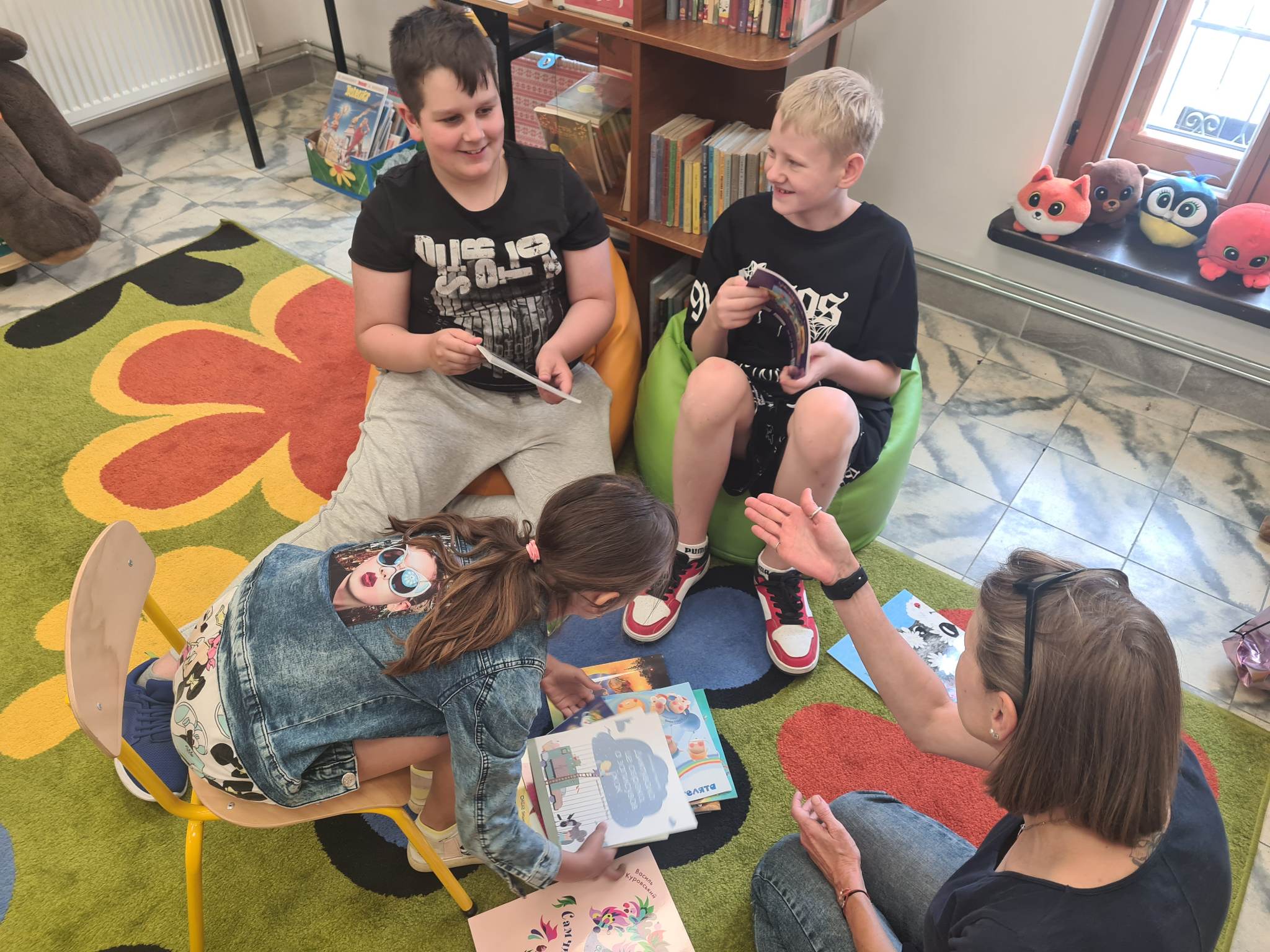 Zaprosiliśmy do biblioteki uczniów – dzieci narodowości ukraińskiej, które wysłuchały bajek przeczytanych przez Panią Irynę w ich języku narodowym. Obu stronom sprawiło to wielką przyjemność 🙂