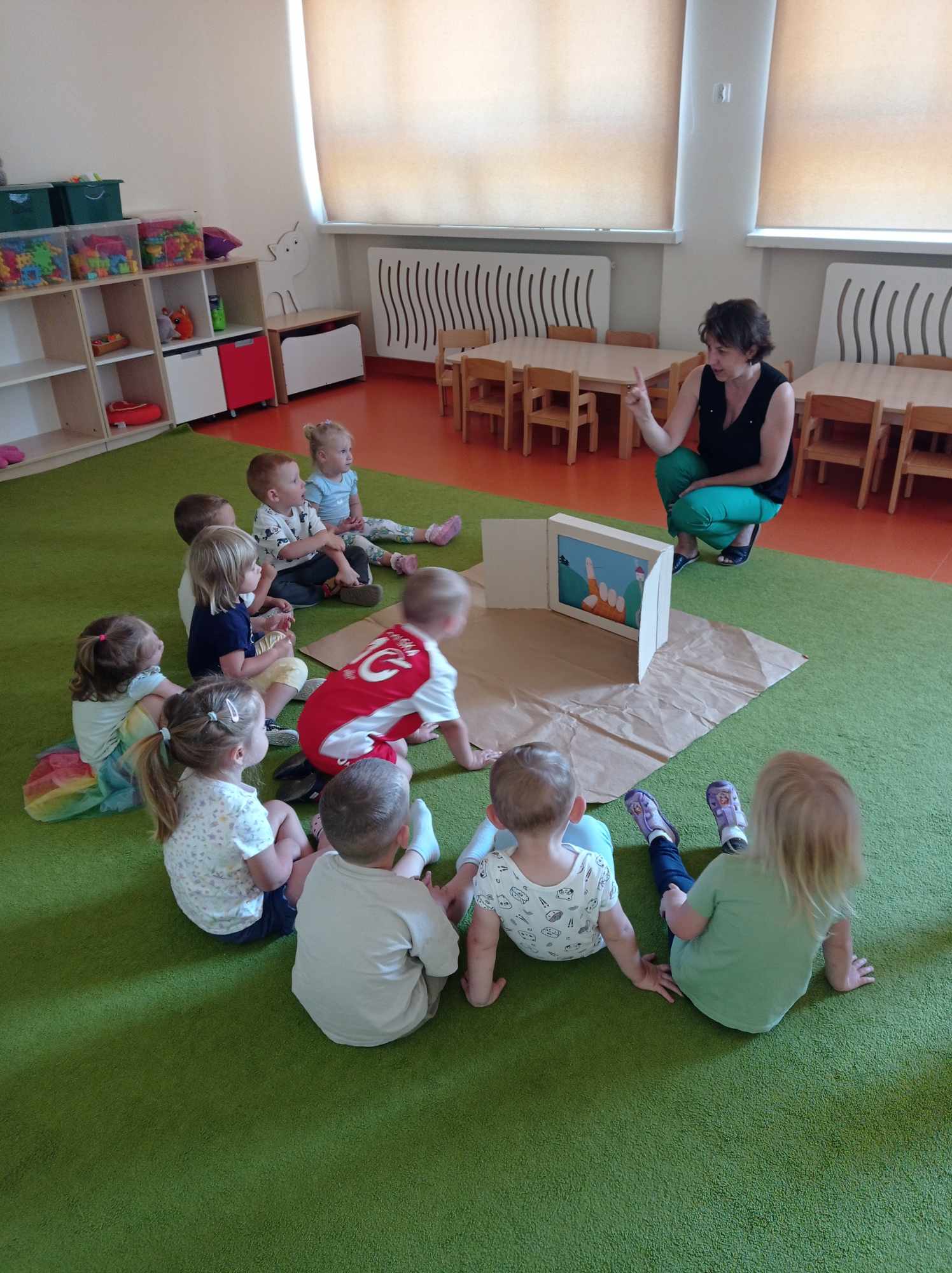 W lipcowe wtorki w filii w Bogumiłowicach pani Kasia prowadziła dla dzieci z Publicznego Żłobka w Bogumiłowicach „Czytanie na dywanie”. Jak się okazało Maluchy świetnie rozpoznają kolory, a podczas ostatnich zajęć z ciekawością wysłuchały opowiastki „O panach Palcach” w teatrzyku kamishibay.