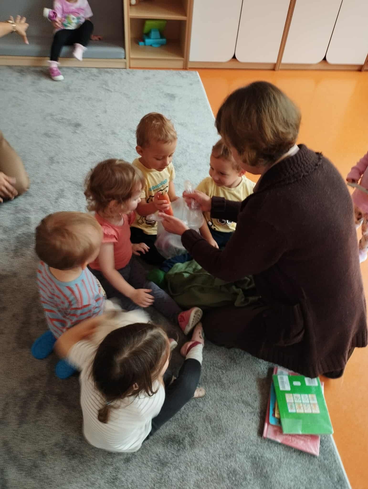 Czytanie w żłobku opublikowany wAktualności, Lekcje biblioteczne w 22 września 2025 przez Redaktor Udostępnij Tweet Na kolejnym Czytaniu w Żłobku Publicznym w Bogumiłowicach dzieci wysłuchały wiersza o owocach i warzywach.