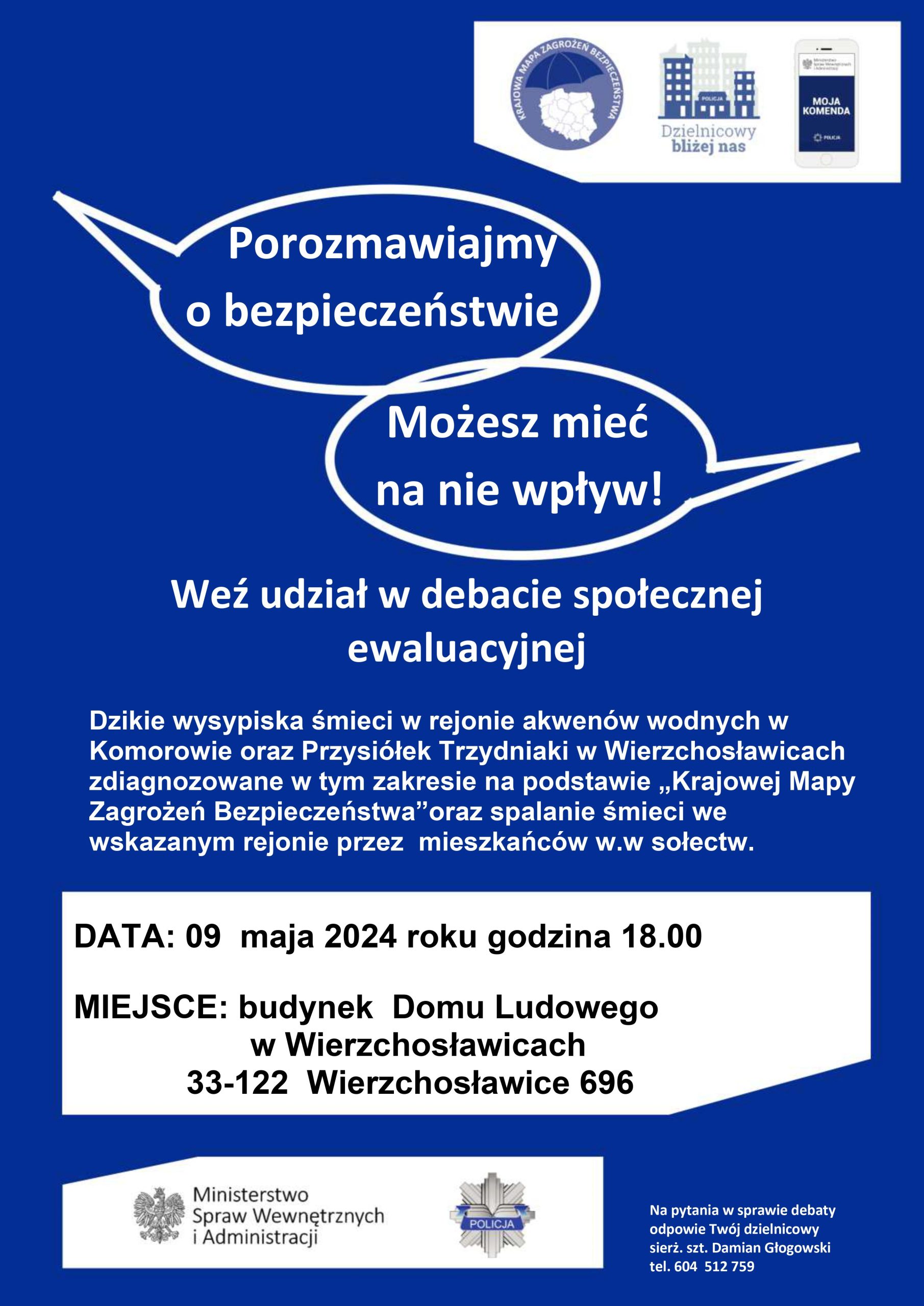 Debata Policyjna 2024 opublikowany wAktualności w 15 kwietnia 2024 przez Redaktor Udostępnij Tweet Zapraszamy wszystkich zainteresowanych na debatę społeczną, która odbędzie się w budynku Domu Ludowego 9. maja 2024 roku o godz. 18.00. Dotyczyć ona będzie dzikich wysypisk śmieci oraz spalania śmieci w konkretnych sołectwach.