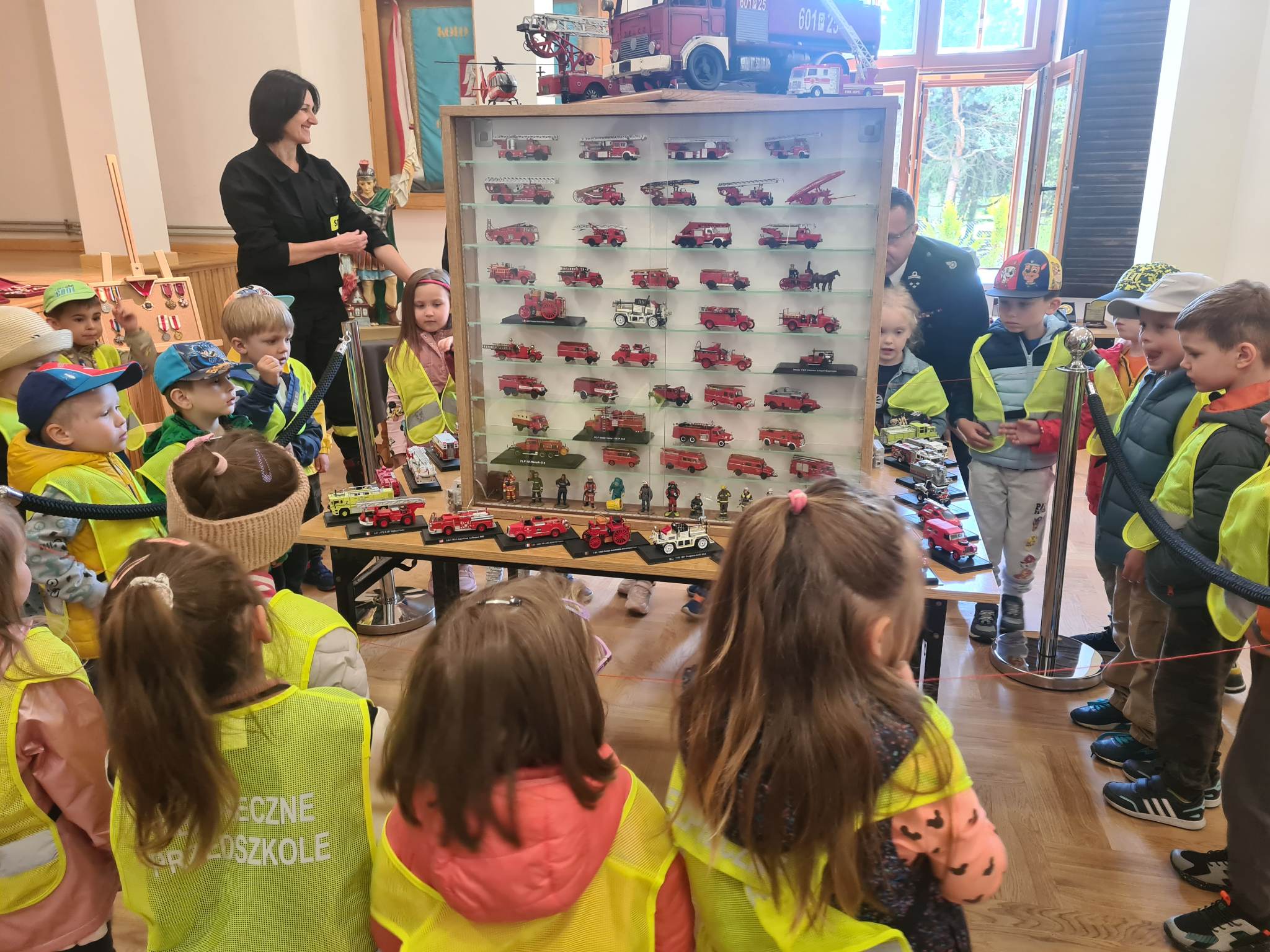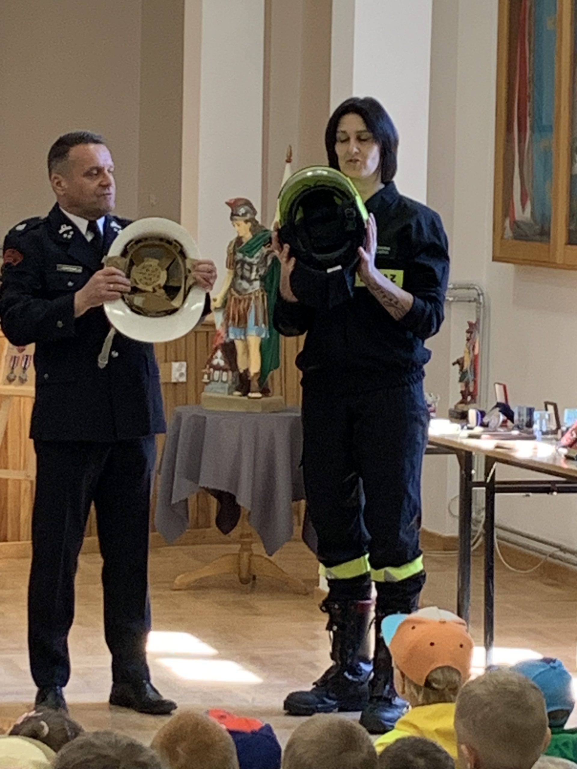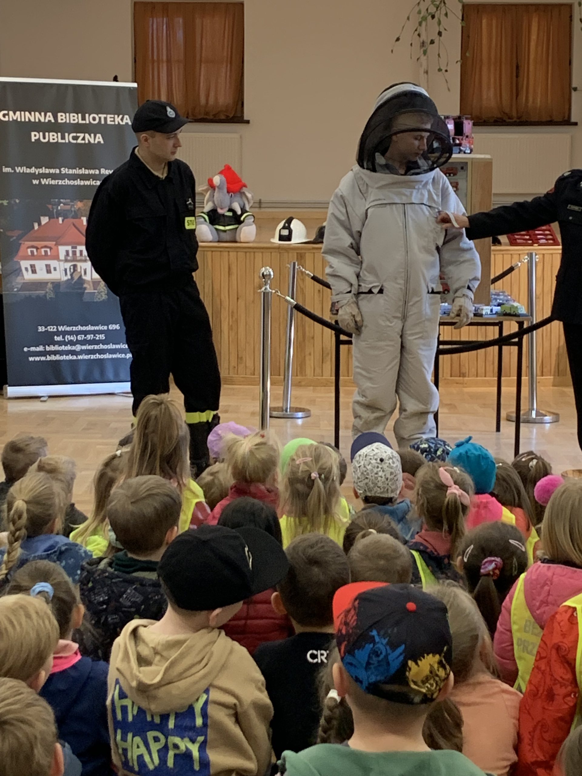 W dniu dzisiejszym gościliśmy w Gminnej Bibliotece Publicznej dzieci z Przedszkola Publicznego w Wierzchosławicach oraz Przedszkola Słoneczko, które przybyły do nas licznie na spotkanie z okazji obchodów Międzynarodowego Dnia Strażaka. Dzieci miały okazje posłuchać opowieści o trudnej i odpowiedzialnej pracy strażaków i obejrzeć wystawę prac plastycznych nadesłanych na konkurs zorganizowany przez Związek Ochotniczych Straży Pożarnych. Dużym zainteresowaniem cieszyła się kolekcjonerska wystawa kilkudziesięciu miniatur wozów strażackich i zabytkowych strażackich hełmów. Największą atrakcją okazał się profesjonalny samochód ratowniczo-gaśniczy należący do OSP Wierzchosławice, do którego można było wsiąść i poczuć przez chwilę, jak to jest być strażakiem 🙂
