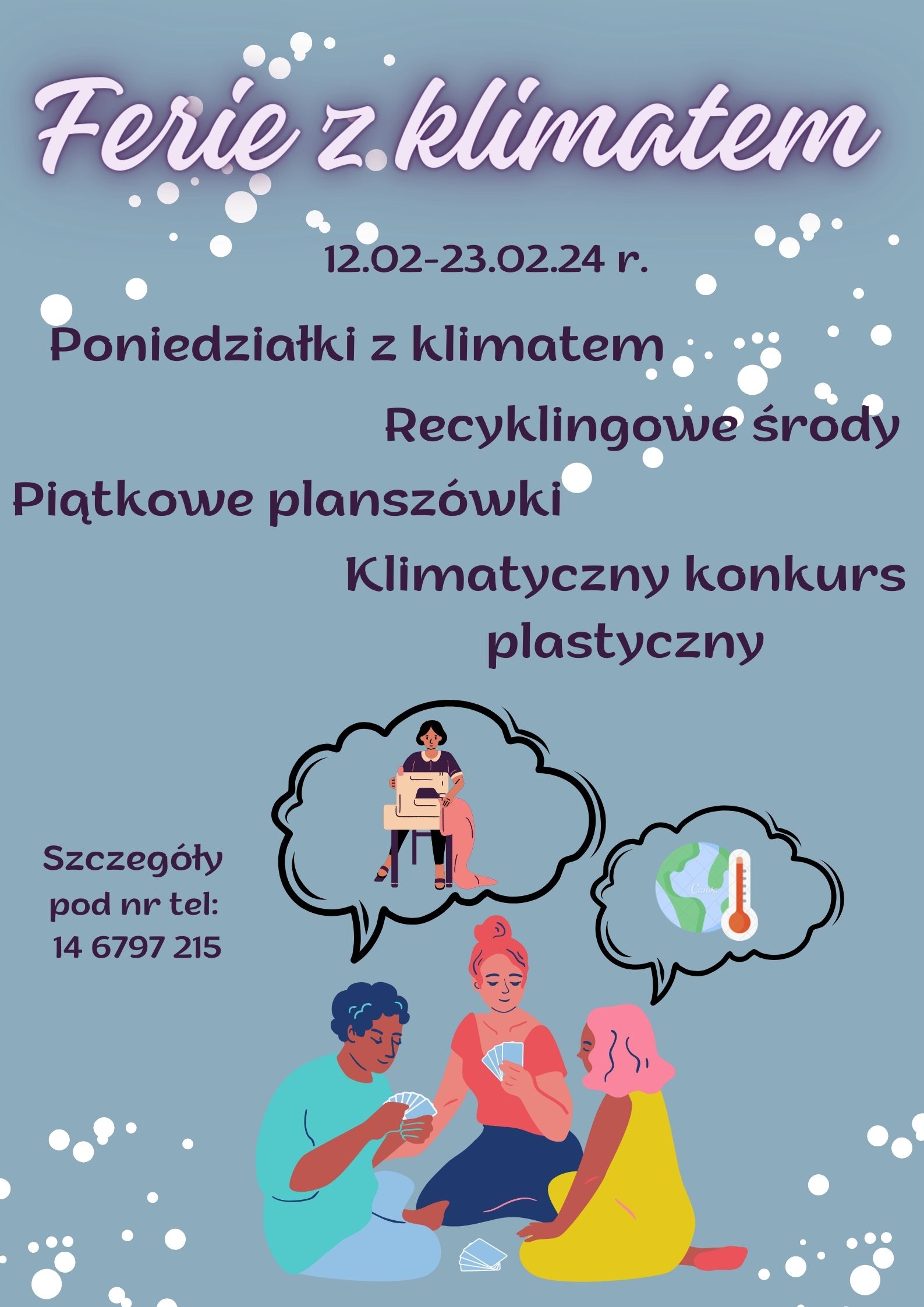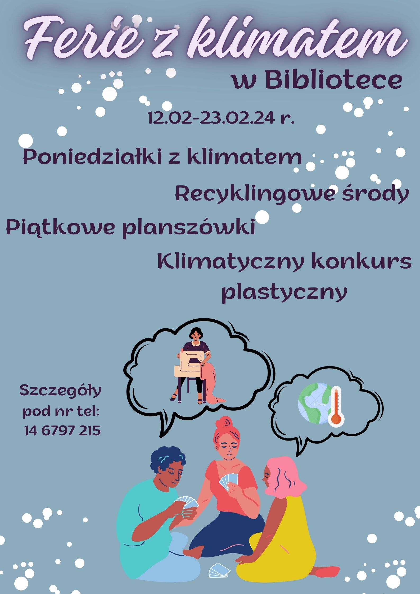 Zapraszamy do Gminnej Biblioteki Publicznej w Wierzchosławicach na „FERIE Z KLIMATEM”, które odbywać się będą w poniedziałki, środy i piątki w dniach 12.02-23.02.24 r.