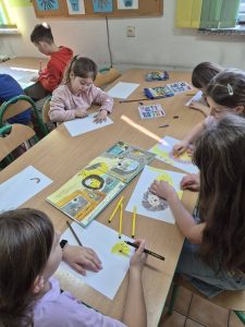 Kreatywność dzieci z Placówki Wsparcia Dziennego w Mikołajowicach nie miała końca, a jak się okazało niektóre pomysły na temat tego „Jak schować lwa?” pokryły się z przeczytane książką Helen Stephens