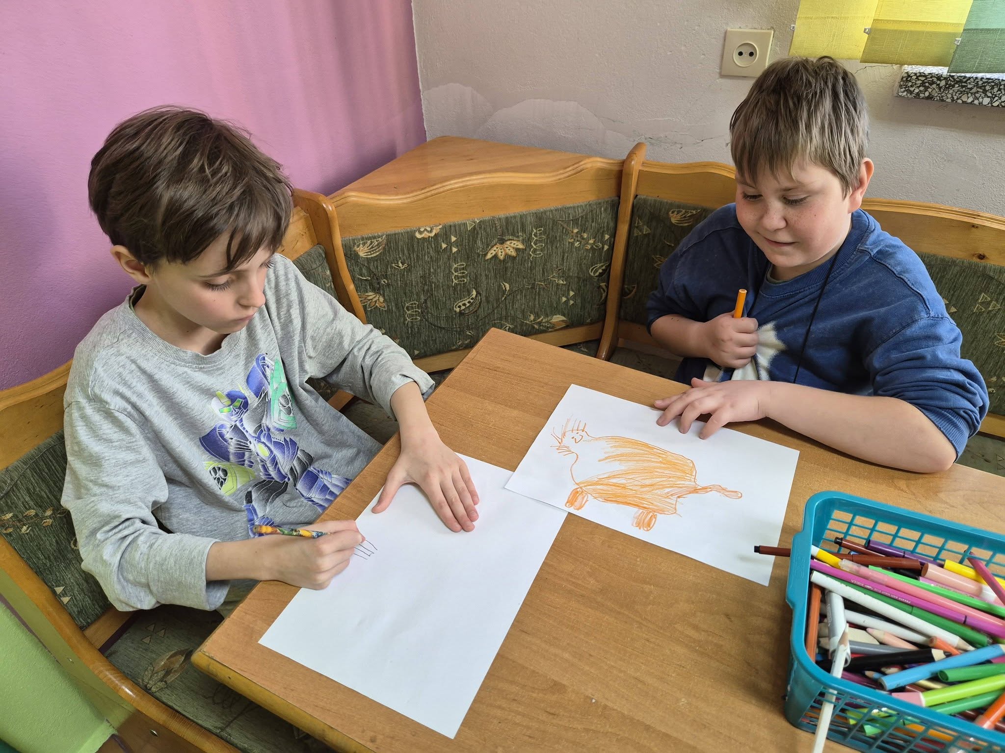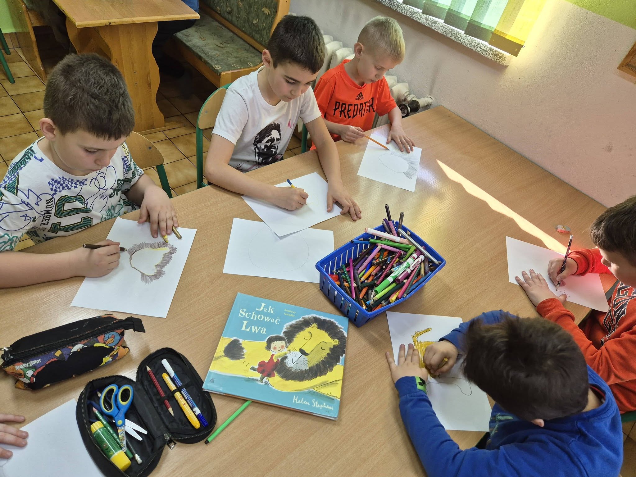 Kreatywność dzieci z Placówki Wsparcia Dziennego w Mikołajowicach nie miała końca, a jak się okazało niektóre pomysły na temat tego „Jak schować lwa?” pokryły się z przeczytane książką Helen Stephens
