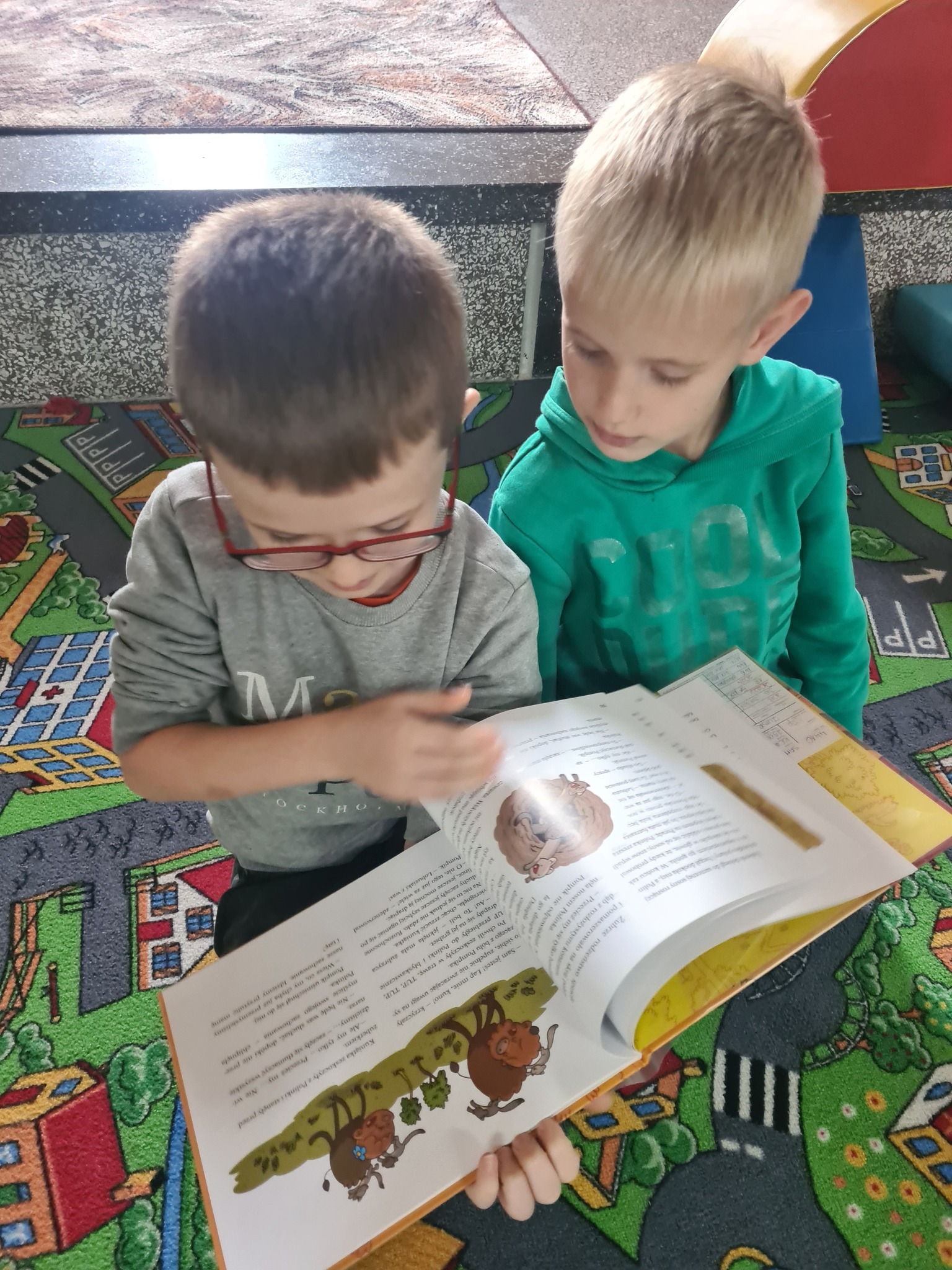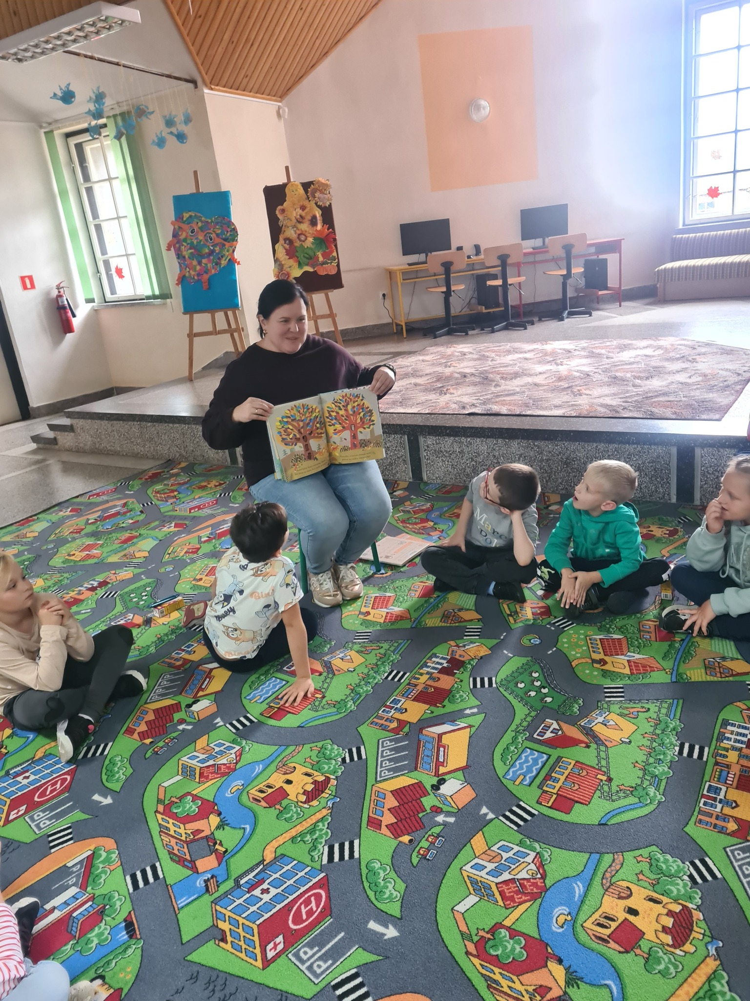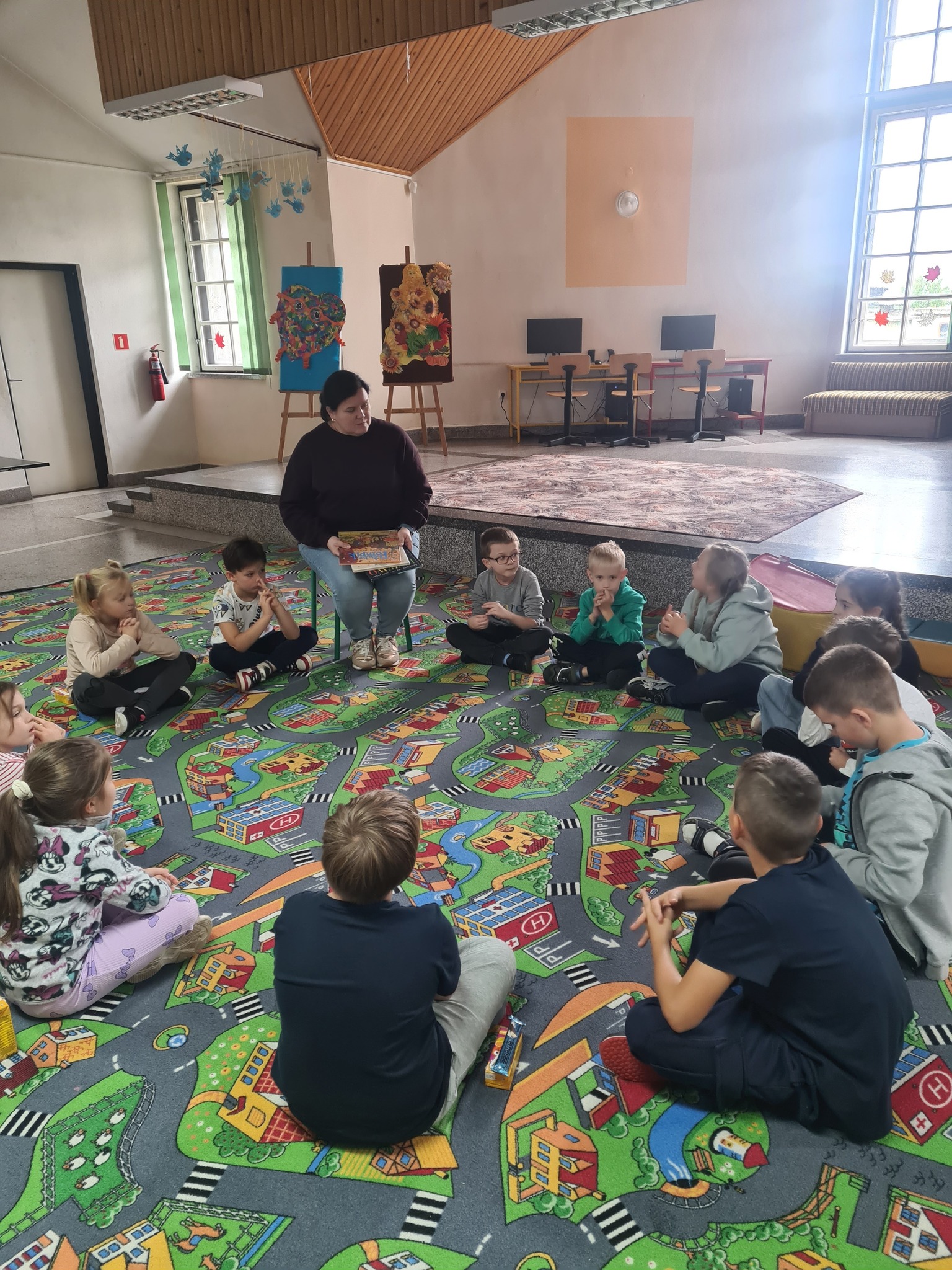 Nie da się ukryć, że jesień już zadomowiła się na dobre. Koloruje liście na drzewach, które zgubiły już żołędzie i kasztany, skrapla trawę rosą, do koszyka zbiera leśne grzyby i sprawia, że zwierzęta szykują się do zimowego snu. O tym, jak zmienia się przyroda i czują się zwierzęta tęskniące za ciepłym latem, czytaliśmy z dziećmi z Placówki Wsparcia Dziennego w Mikołajowicach 😉