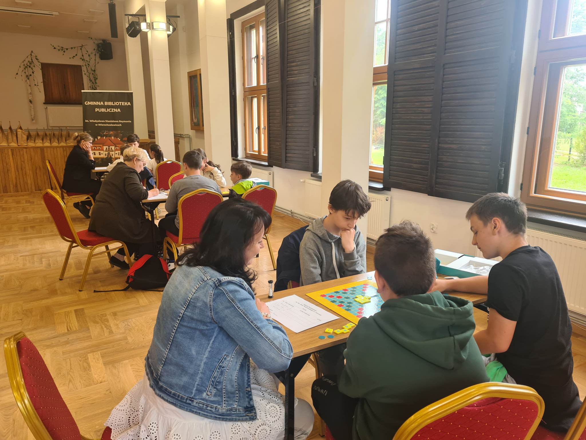 „Językowa grywalizacja dla Szkolniaków” to międzyszkolny turniej gier językowych, którego finał odbył się dzisiaj w Bibliotece. Wzięło w nim udział 5 drużyn ze wszystkich szkół podstawowych na terenie gminy. Najlepszą w językowych rozgrywkach okazała się drużyna ze Szkoły Podstawowej im. Tadeusza Kościuszki w Łętowicach. Drugie miejsce zajęła Szkoła Podstawowa im. Mikołaja Kopernika w Mikołajowicach, a trzecie Szkoła Podstawowa im. Ks. Jana Twardowskiego w Ostrowie. Wszyscy uczestnicy otrzymali nagrody rzeczowe.