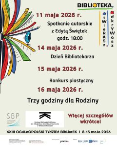 Przedstawiamy „rozkład jazdy” na zbliżający się XXIII Ogólnopolski Tydzień Bibliotek 😀