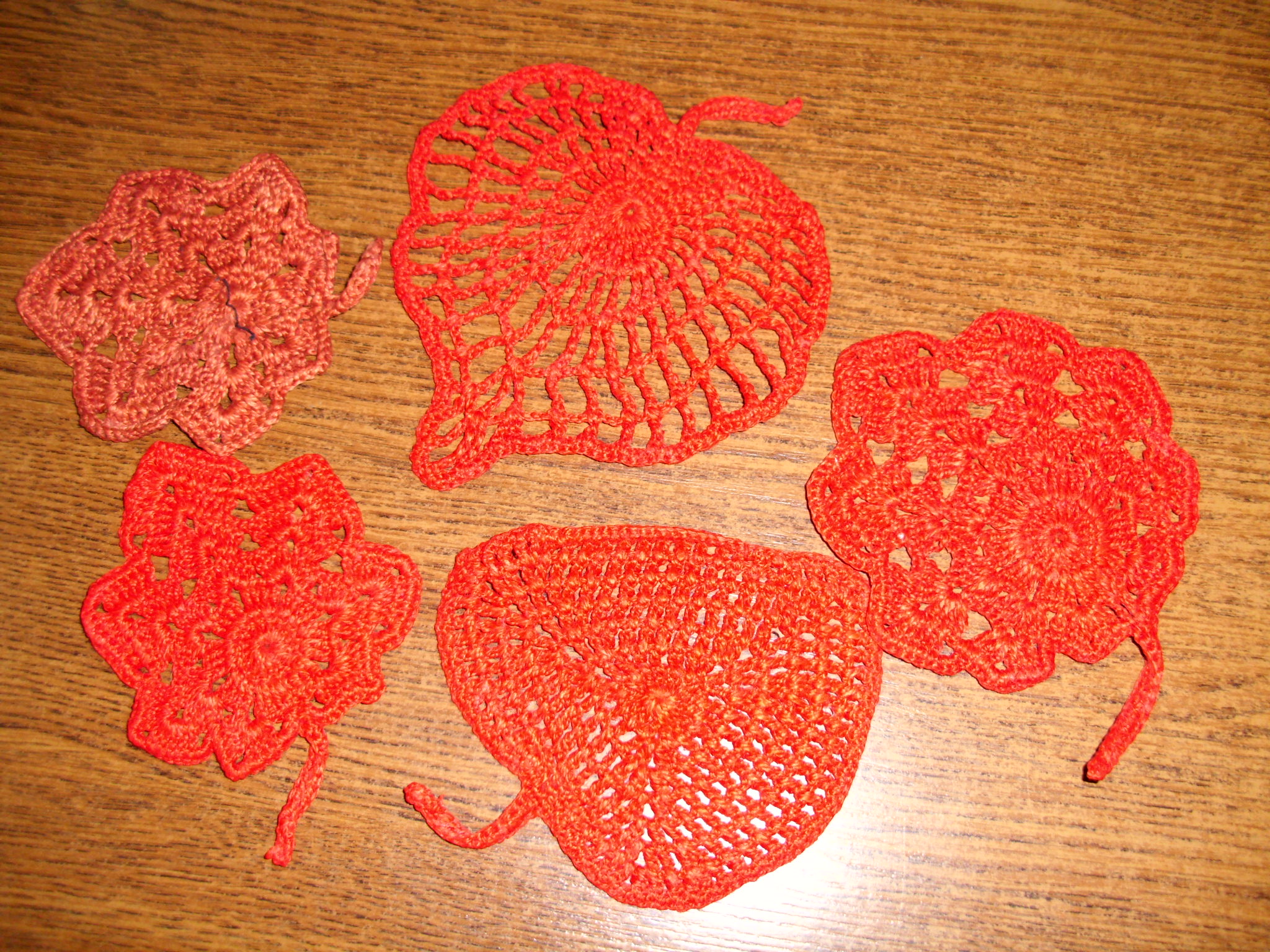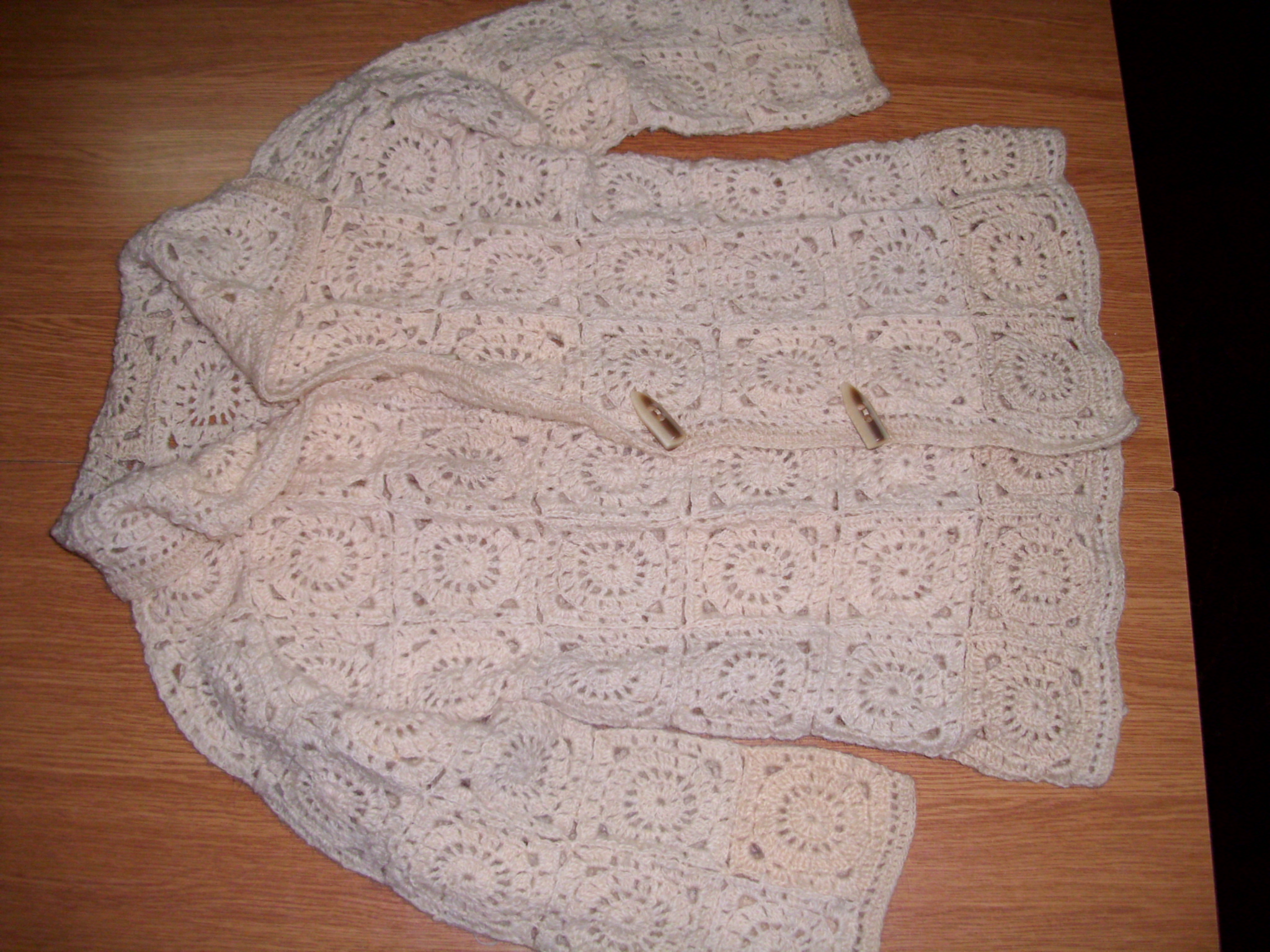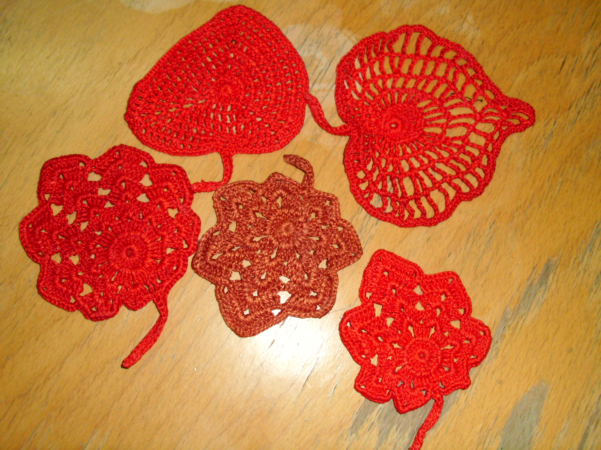 Kapryśna wiosna pozwala na dbanie o ogród i na dzierganie. Poniżej prezentujemy obrus na duży stół wykonany przez Marię Kwaśniak, szydełkowe liście Katarzyny Kwaśniak oraz sweter z elementów wykonany przez Bernadetę Bartnik.
