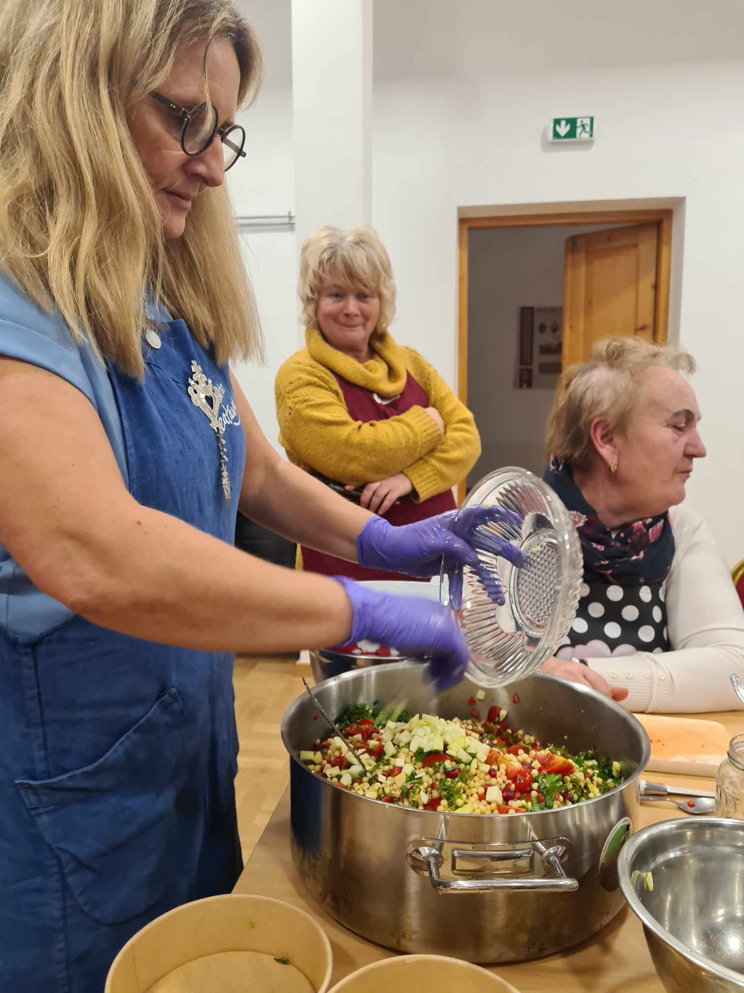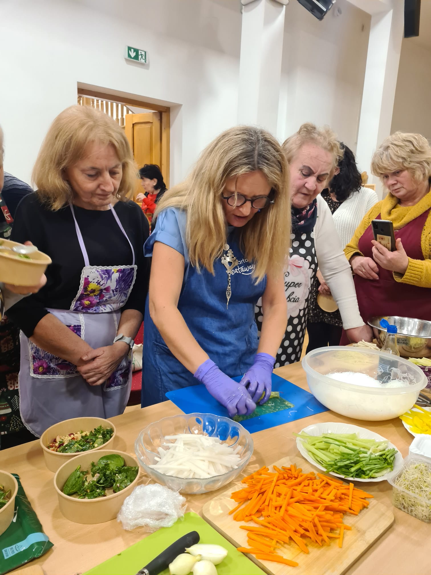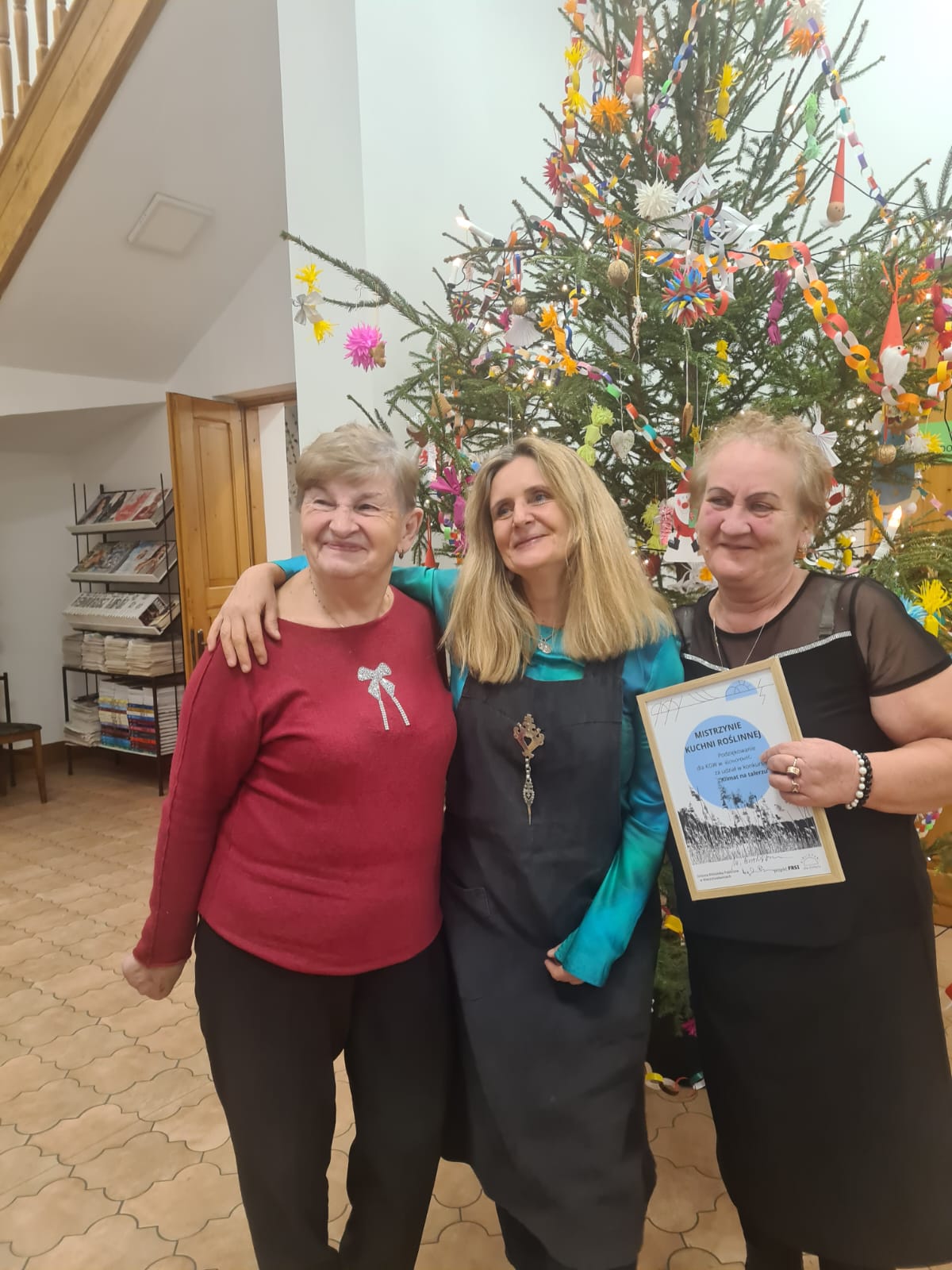 W dwa grudniowe czwartki w Gminnej Bibliotece Publicznej w Wierzchosławicach odbywały się spotkania zorganizowane w ramach projektu „Biblioteki dla Klimatu”. 5. grudnia miały miejsce warsztaty kulinarne poprowadzone przez Martę Bradshaw założycielkę platformy Eataway popularyzującej wspólne gotowanie w duchu zero waste. Razem z paniami z Kół Gospodyń Wiejskich z terenu naszej gminy przygotowałyśmy roślinne potrawy rozmawiając przy stole o sprawdzonych sposobach na niemarnowanie jedzenia i dobrych praktykach kuchni sezonowej.