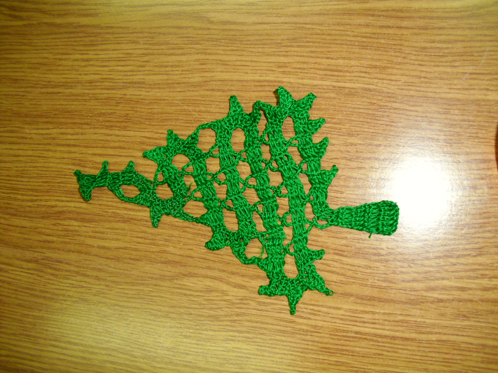 Katarzyna Kwaśniak: zielony komplet z 2 parami rękawiczek, melanżowa chusta, miodowy komin, choinka, popielaty sweter.