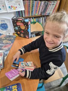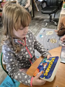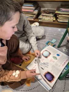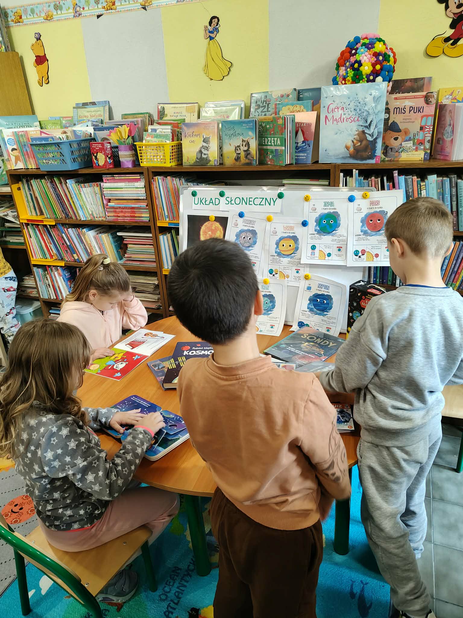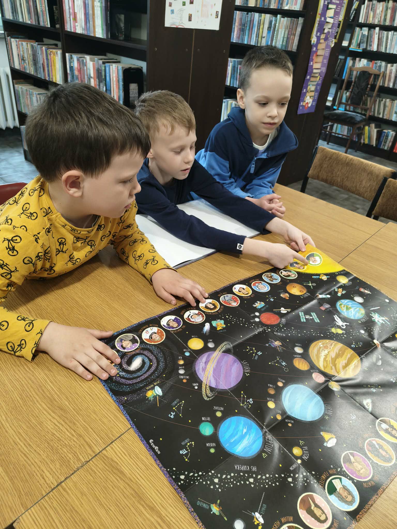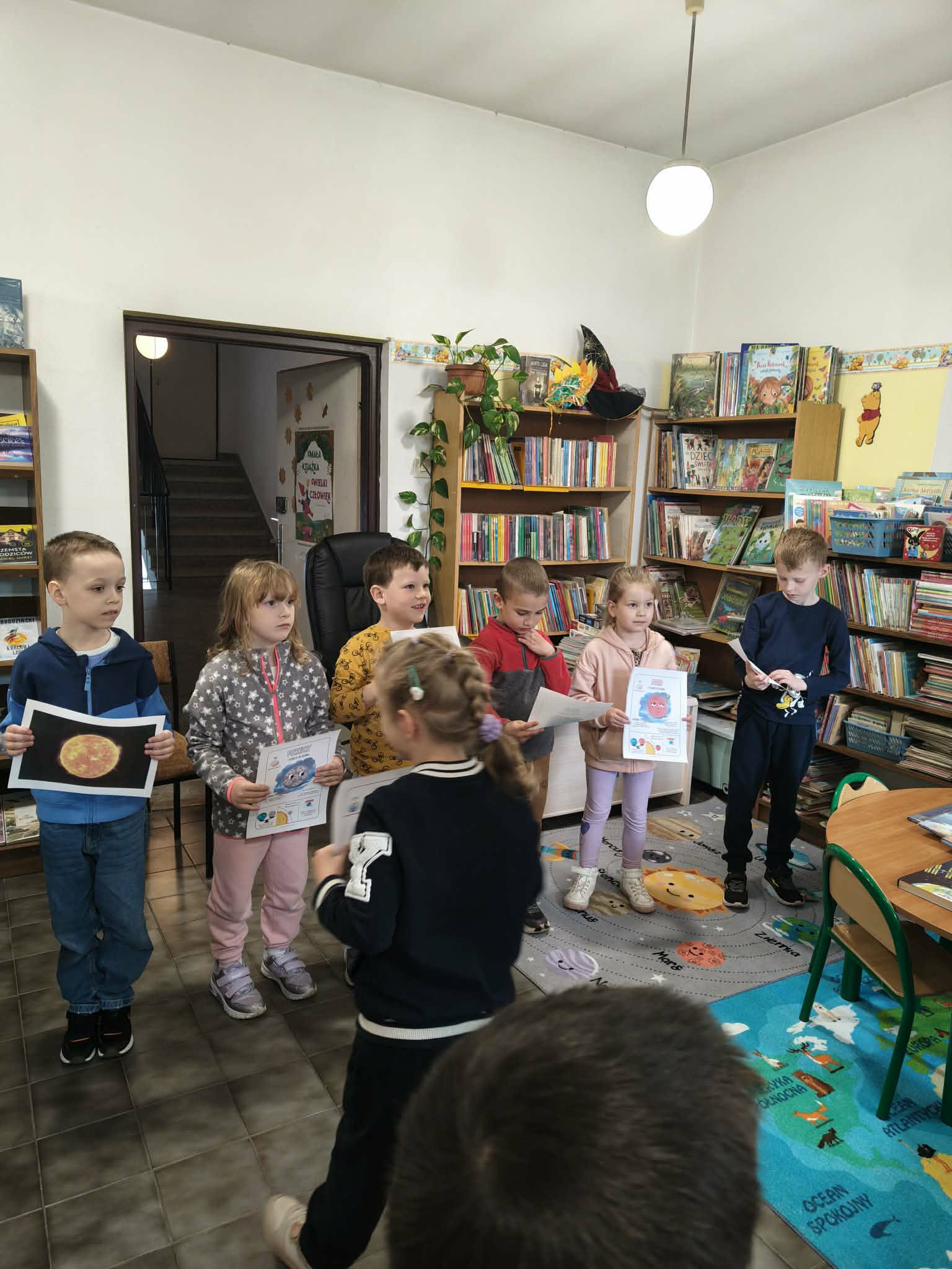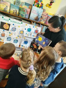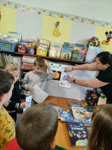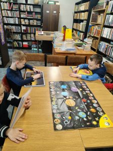 W środę bibliotekę w Mikołajowicach odwiedziła klasa „O” ze Szkoły Podstawowej im. M. Kopernika w Mikołajowicach. Po zapoznaniu dzieci z biblioteką i księgozbiorem, wyruszyliśmy w interaktywną podróż po kosmosie. Jak się okazało, uczniowie doskonale znają planety układu słonecznego, a ich wiedza o wszechświecie jest zaskakująca. Lekcja biblioteczna o kosmosie to świetny sposób na połączenie nauki z rozwijaniem pasji do czytania, dlatego sporo czasu poświęciliśmy na czytanie książek i rozmowy o podróży w kosmos. Dziękuję za odwiedziny! 🙂