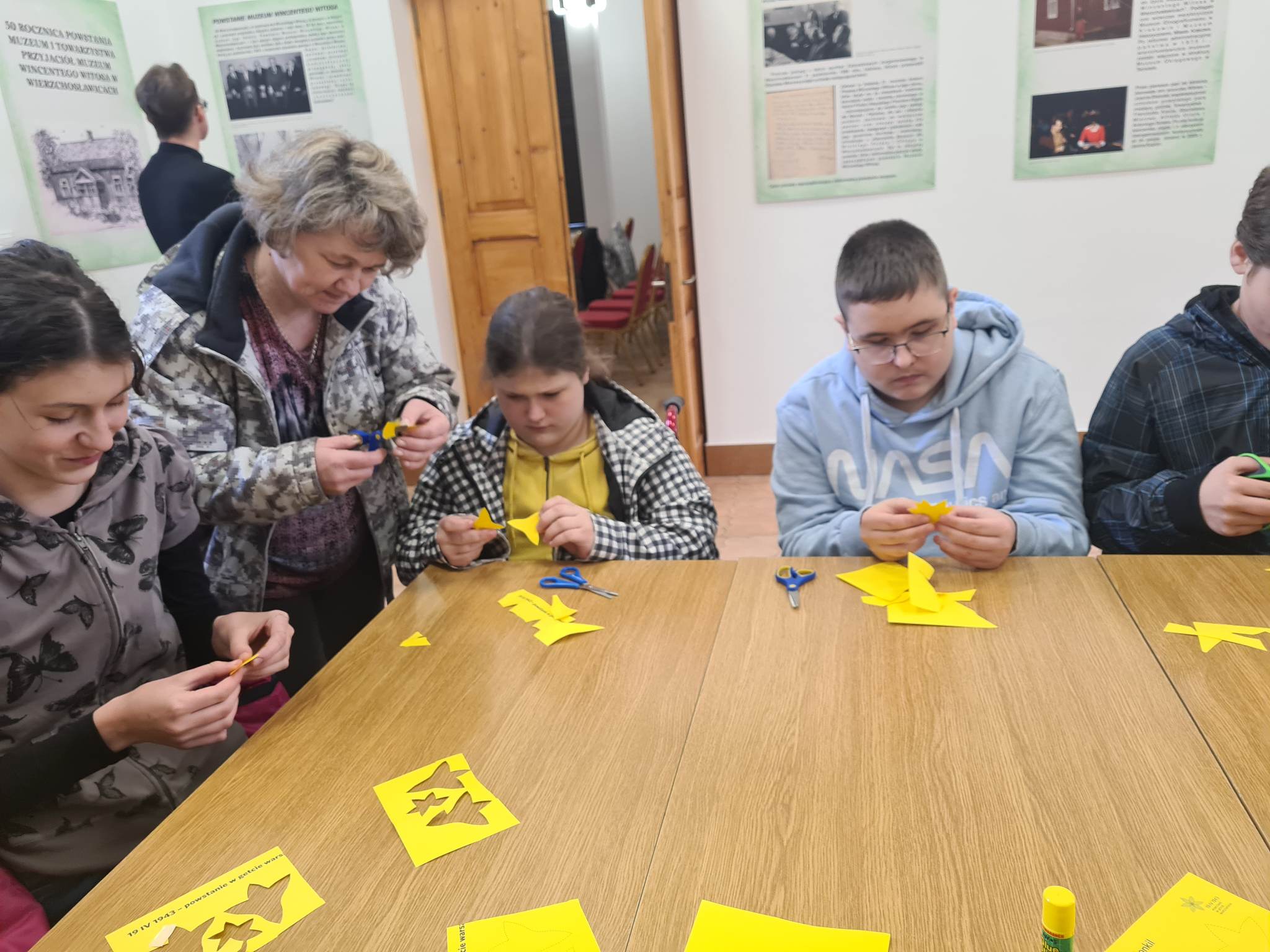 Dziś 19.04, w 80. rocznicę wybuchu powstania w getcie warszawskim, wraz z uczennicami i uczniami Szkoły Podstawowej w Wierzchosławicach i Łętowicach uczestniczyliśmy w Akcji społeczno-edukacyjnej Żonkile organizowanej od 10 lat przez Muzeum Historii Żydów Polskich Polin, pod hasłem „Łączy nas pamięć”. Na początek wysłuchaliśmy prelekcji pana Janusza Skickiego z Muzeum Wincentego Witosa w Wierzchosławicach na temat powstania w getcie warszawskim oraz lokalnej historii Żydów mieszkających w Tarnowie. Następnie obejrzeliśmy film przygotowany na podstawie reportażu Hanny Krall „Zdążyć przed panem Bogiem”, a na koniec wspólnie wykonaliśmy symboliczne żonkile. Wierzymy, że pamięć o przeszłości jest wartością dającą wspólna tożsamość, podkreślającą siłę wspólnoty i znaczenie solidarności. Pamiętamy.