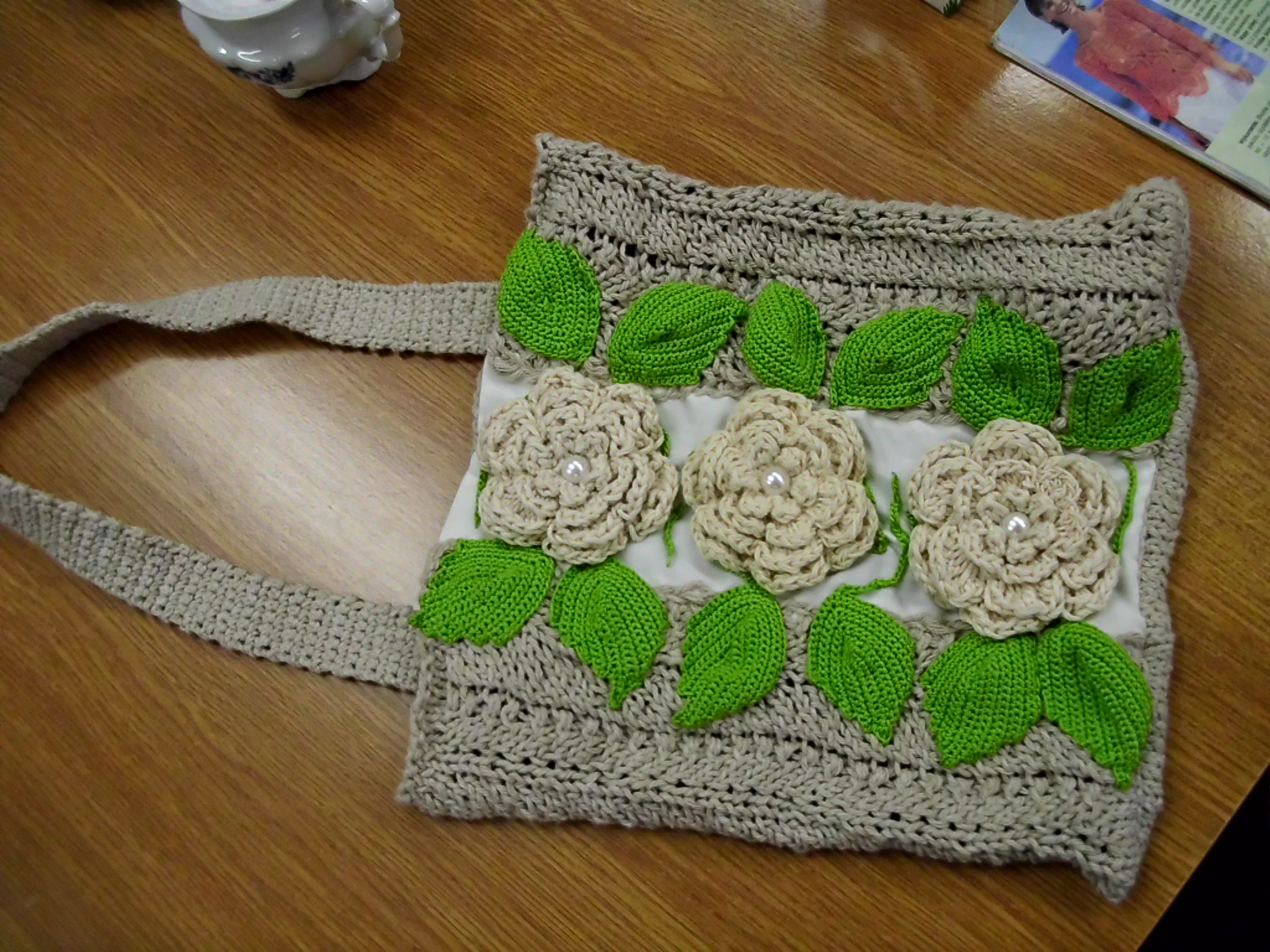 Torebka na ramię wykonana na drutach i szydełku przez Magdalenę Ziółkowską: