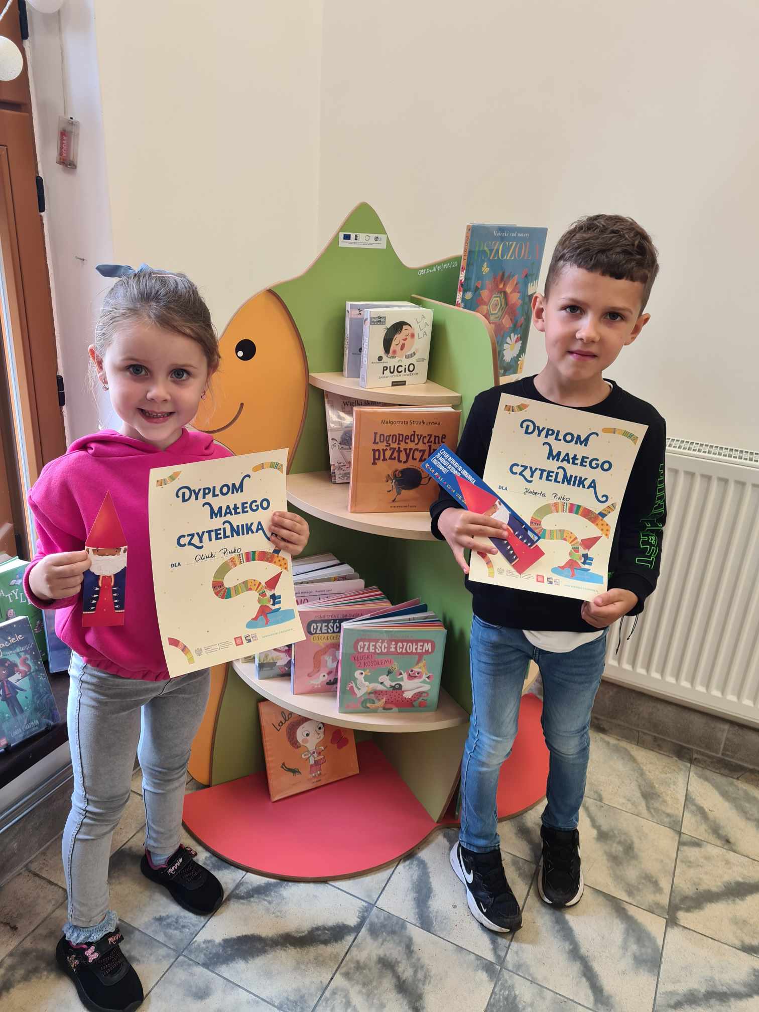 Sierpniowe Dyplomy Małego Czytelnika zostały wręczone. Szczęśliwymi zdobywcami zostali Oliwia i Hubert Piwko, Hania Hanc, Paulinka Wróblewska i Konradek Zelek – czytelnicy z Wierzchosławic. Gratulujemy! 🙂