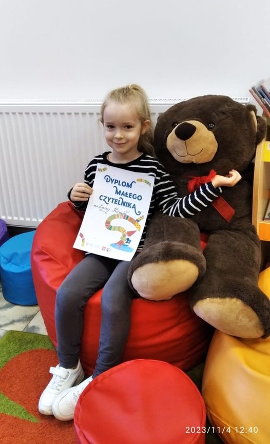 W listopadzie wręczyłyśmy kolejne Dyplomy Małych Czytelników. Tym razem Karty Małego Czytelnika zapełniły dziesięcioma naklejkami: Karolina Duda oraz Amelia Krajewska w Filii w Łętowicach, Lena Kozioł, Maja Nowak, Lena Strzesak oraz Julia Karpiel w Bibliotece w Wierzchosławicach, a także Franciszka Lizak w Filii w Bobrownikach Małych.