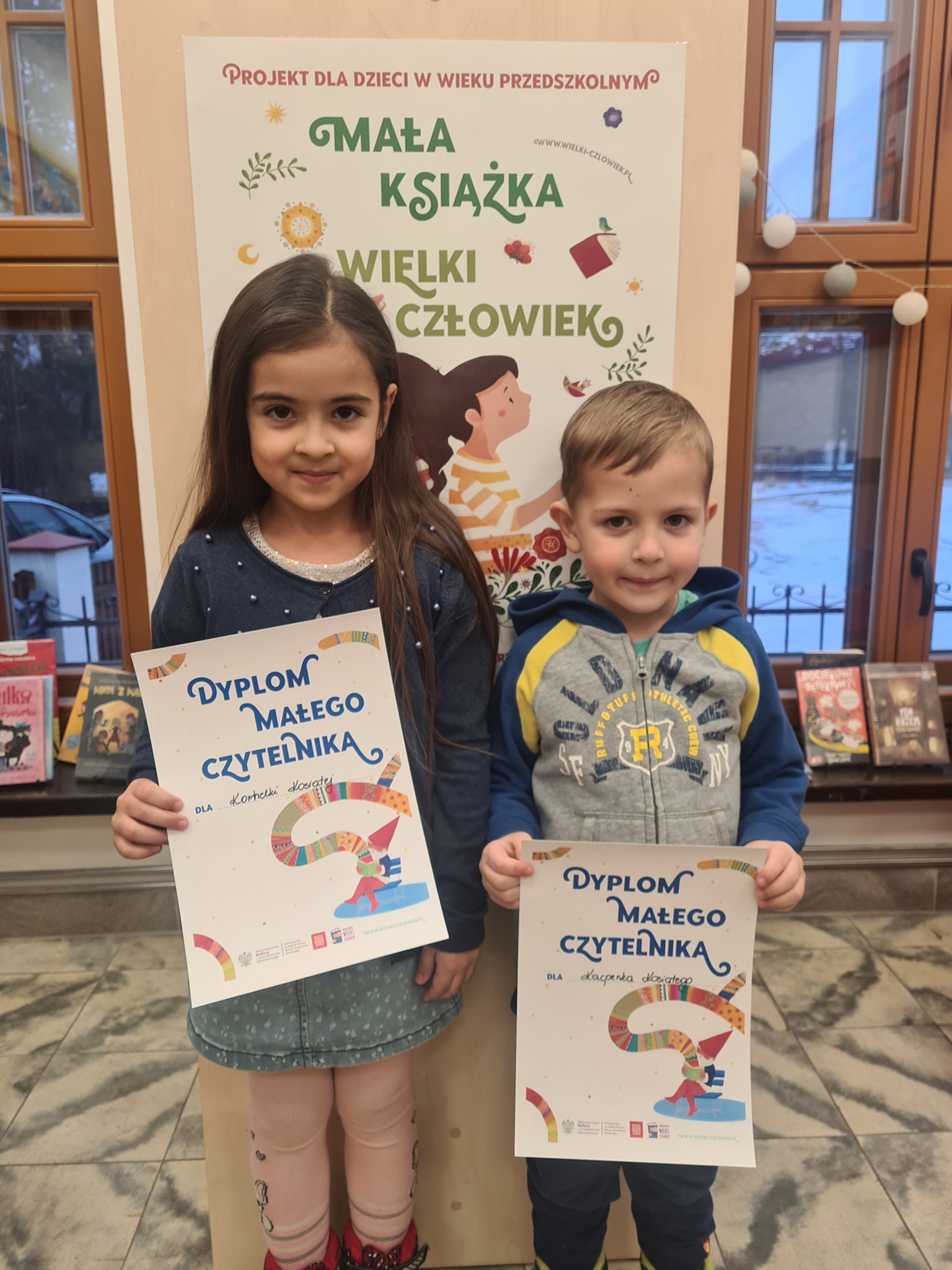 Początek roku obfitował w radość naszych najmłodszych czytelników, którzy zapełnili swoje karty naklejkami i otrzymali Dyplomy Małego Czytelnika. W styczniu i lutym uhonorowani zostali: Gustaw i Marysia Warszawscy, Kornelia i Kacper Kosiaty, Igor Kalita oraz Tomuś Nosek w bibliotece w Wierzchosławicach, Franiu Bryl w filii w Mikołajowicach oraz Natalka Buwaj w filii w Bobrownikach Małych. Serdecznie gratulujemy! 🙂
