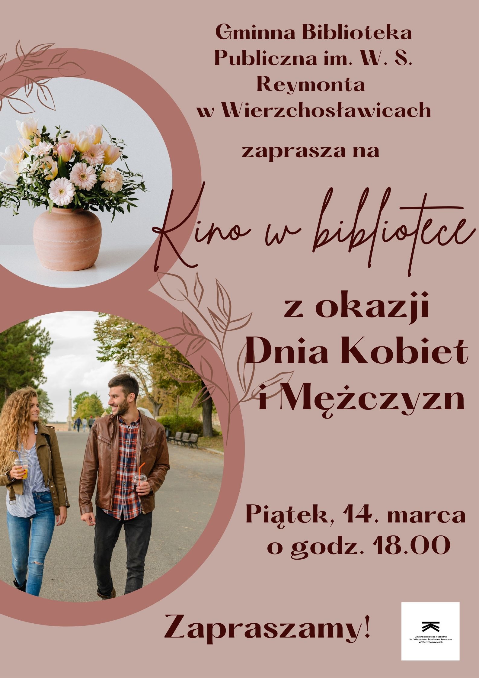 Gminna Biblioteka Publiczna im. W. S. Reymonta w Wierzchosławicach zaprasza na Kino w bibliotece z okazji Dnia Kobiet i Mężczyzn Piątek, 14. marca o godz. 18.00