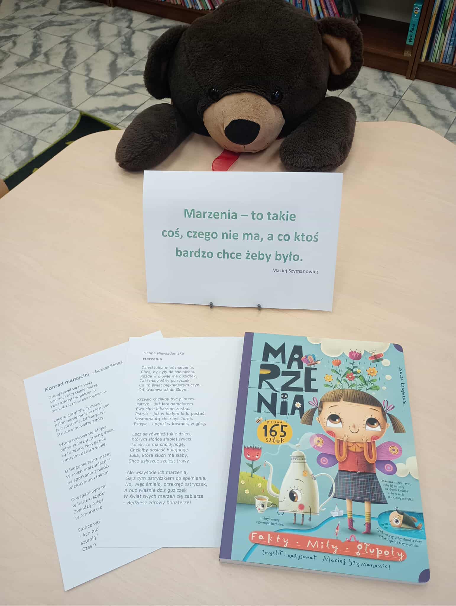 Podobno w bibliotece można znaleźć rzeczy, które nie mieszczą się w głowie 🙂 Z pewnością nie mieszczą się w niej także nasze marzenia – te małe, większe i największe, te, które są tuż za rogiem i te, na które trzeba jeszcze chwilkę poczekać. O marzeniach właśnie rozmawialiśmy na ostatniej lekcji bibliotecznej z „Zuchami” z Niepublicznego Przedszkola „Słoneczko” w Wierzchosławicach.