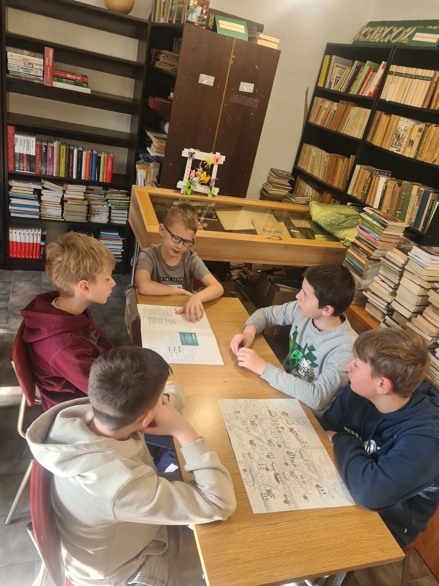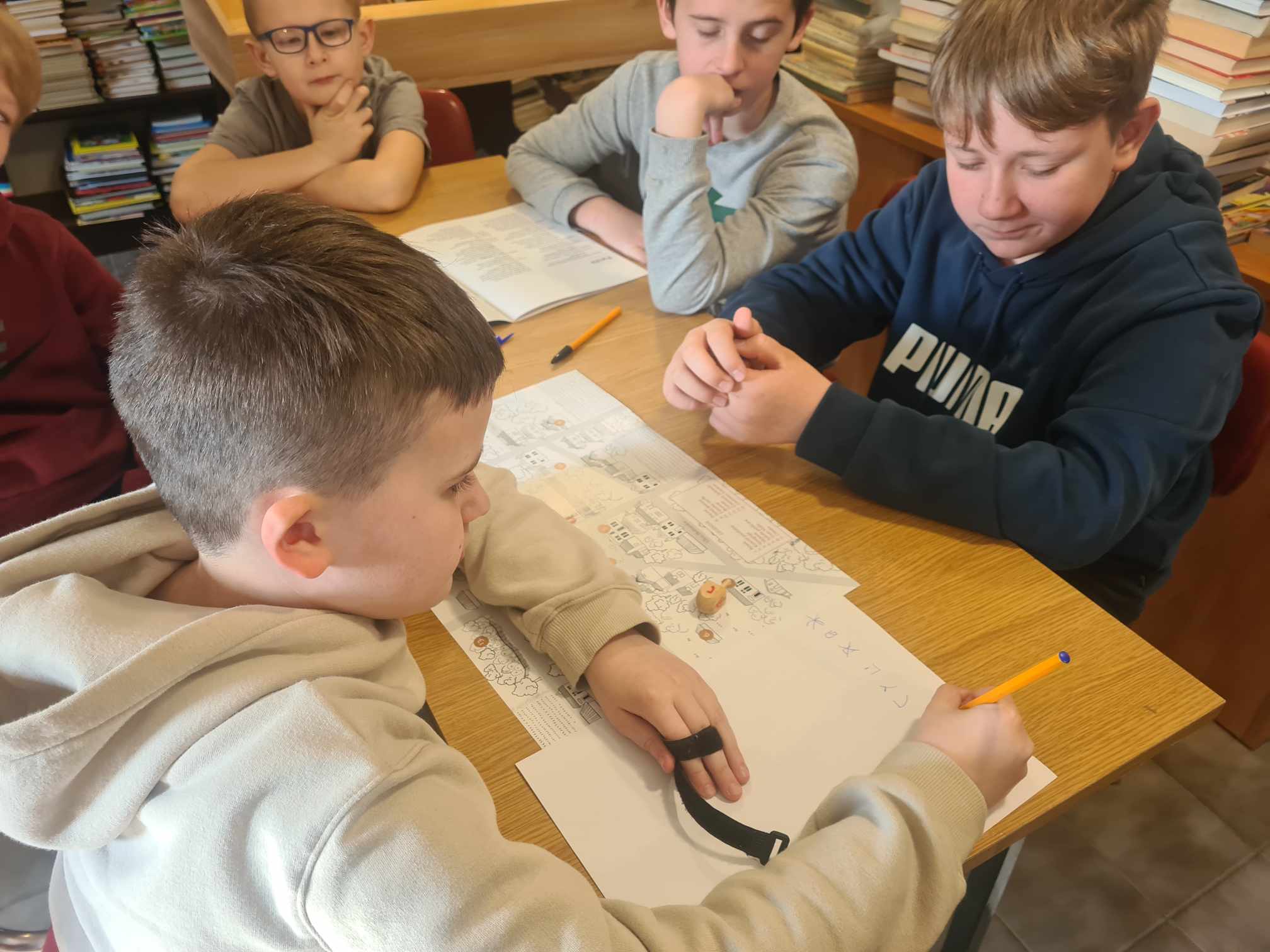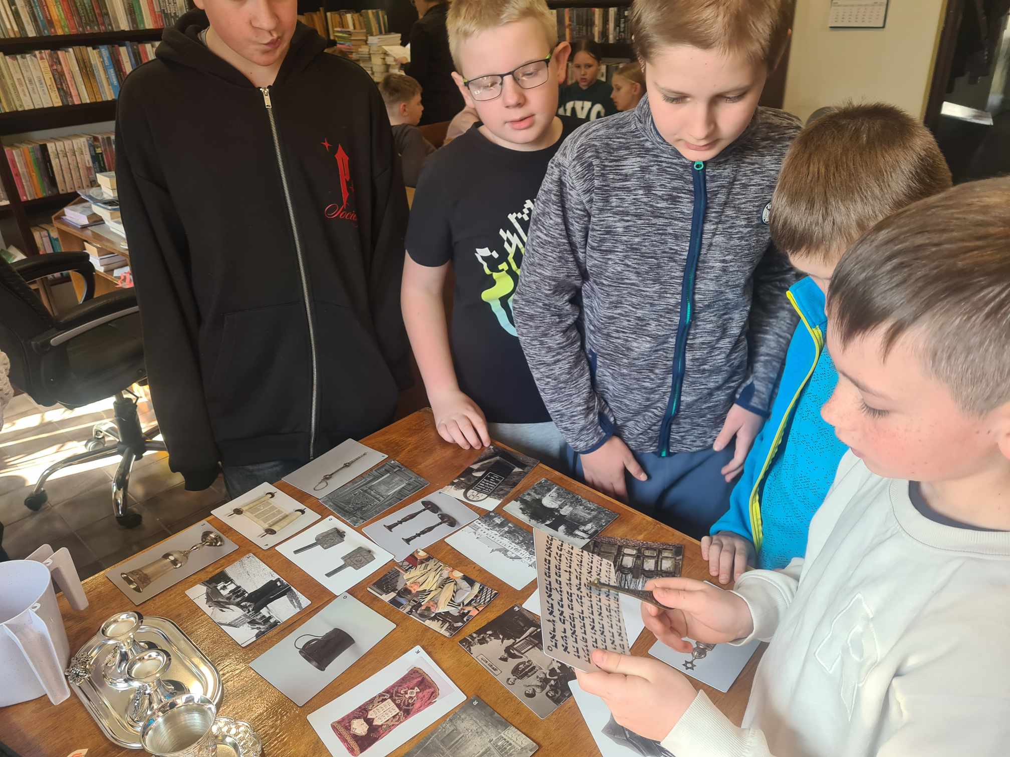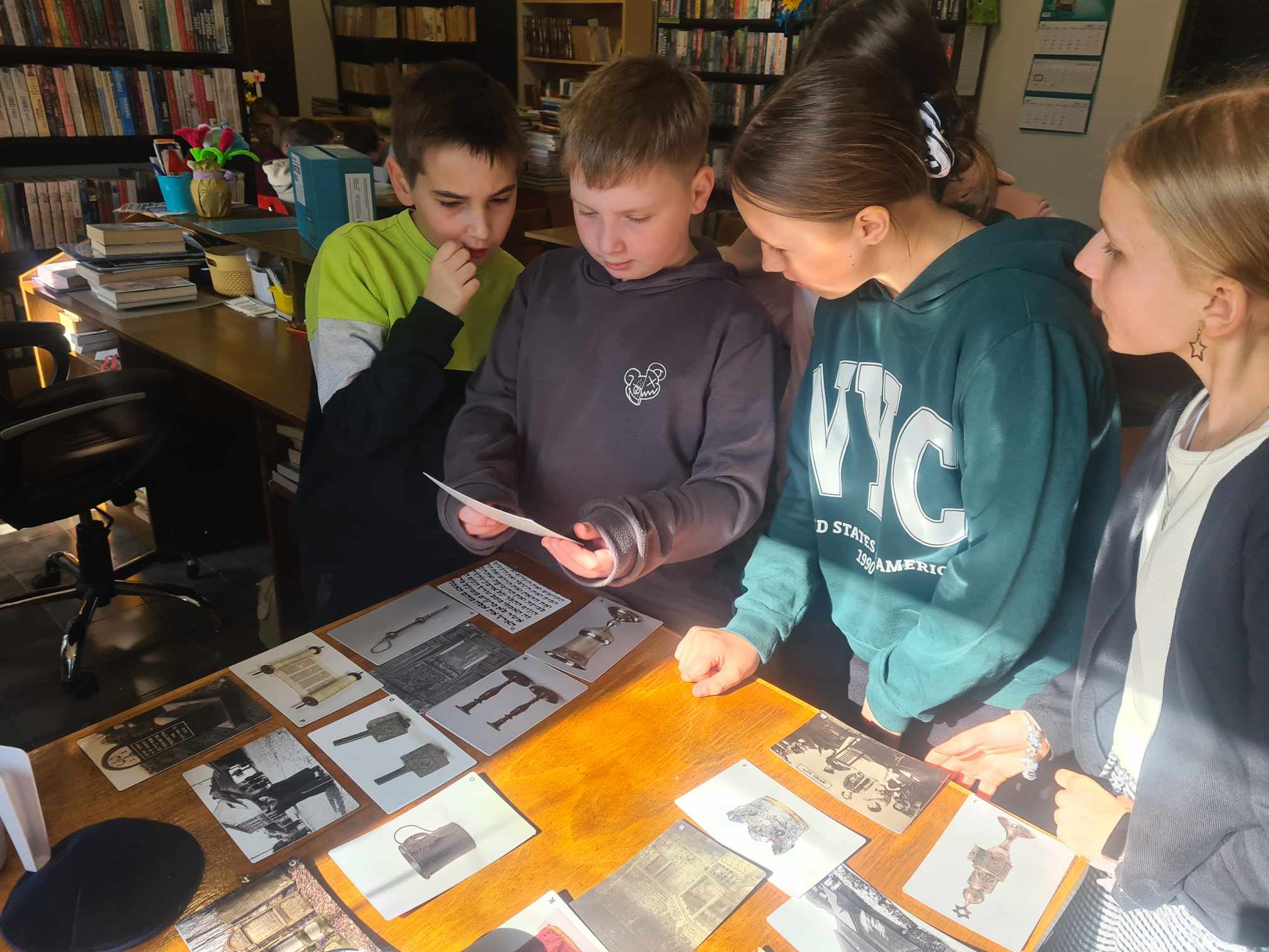 Uczniowie klasy 5 i 6 Szkoły Podstawowej im. Mikołaja Kopernika w Mikołajowicach, 14. kwietnia wzięli udział w warsztatach zorganizowanych w Bibliotece Publicznej w Mikołajowicach, w ramach projektu o nazwie „Muzeum w pudełku”. Warsztaty odbyły się z wykorzystaniem gry narracyjnej „Miasteczko Malki” – nowatorskim narzędziem edukacyjnym pozwalającym w sposób atrakcyjny i aktywny uczyć o elementach kultury i historii polskich Żydów. Uczniom spodobał się ten sposób nauki 🙂