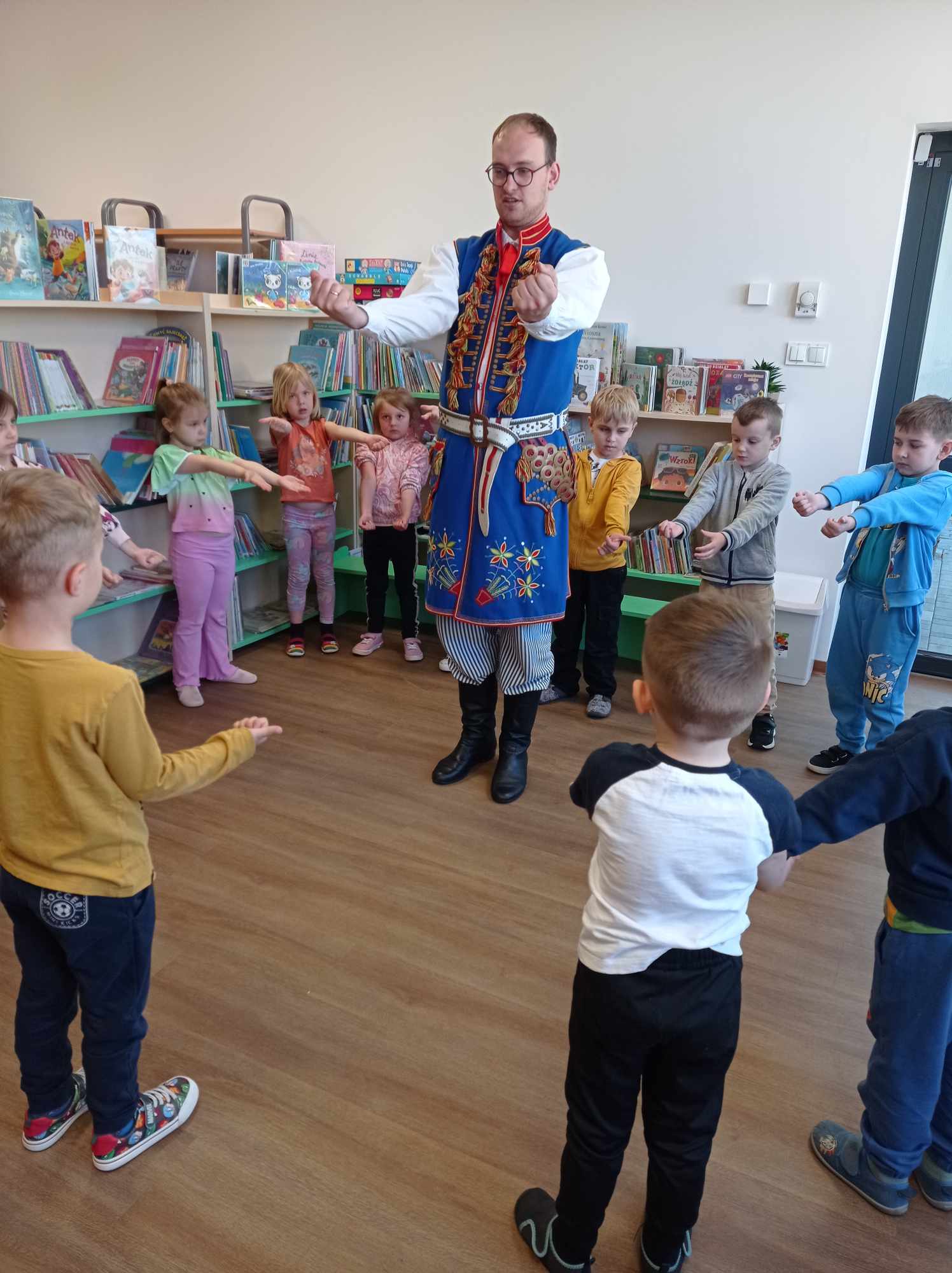 29 kwietnia obchodzimy Międzynarodowy Dzień Tańca, w 2025 roku obchodzimy 1000-lecie Królestwa Polskiego oraz 80-lecie Zespół Pieśni i Tańca Swojacy. W nawiązaniu do tych jubileuszy, w poniedziałek w filii w Łętowicach, gościliśmy Pana Pawła Dąbrowskiego – kierownika zespołu, dzięki któremu dzieci z kl. 0 ze Szkoła Podstawowa im. Tadeusza Kościuszki w Łętowicach, które wzięły udział w zajęciach, poznały znaczenie kolorów i haftów na stroju ludowym oraz kroki do dwóch tańców narodowych.