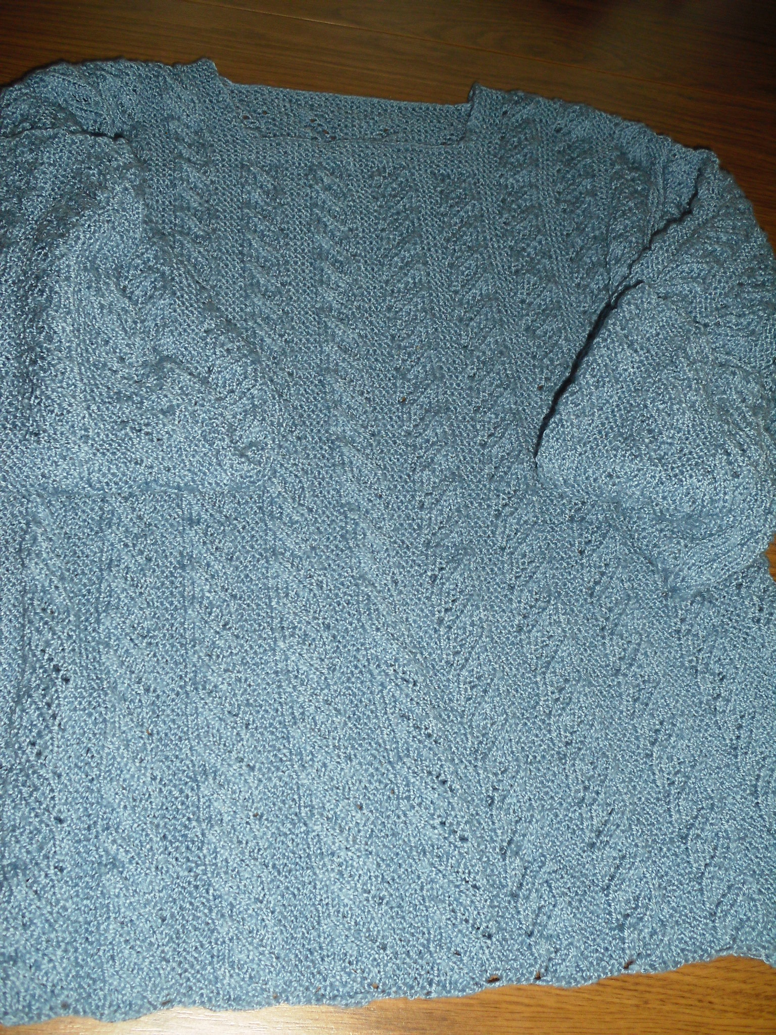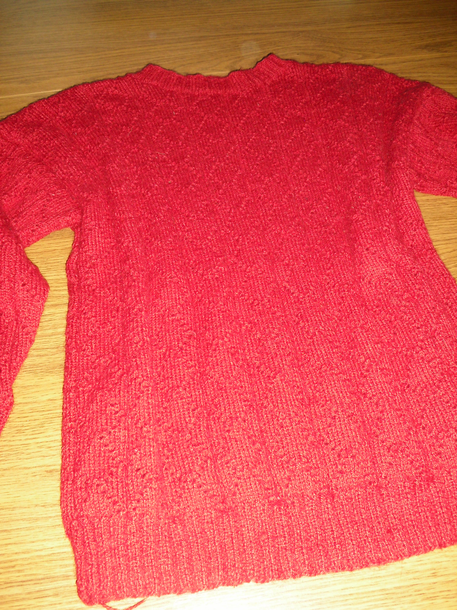 Sweterki z długim rękawem w kolorach: niebieskim, czerwonym i białym wykonała Katarzyna Kwaśniak.