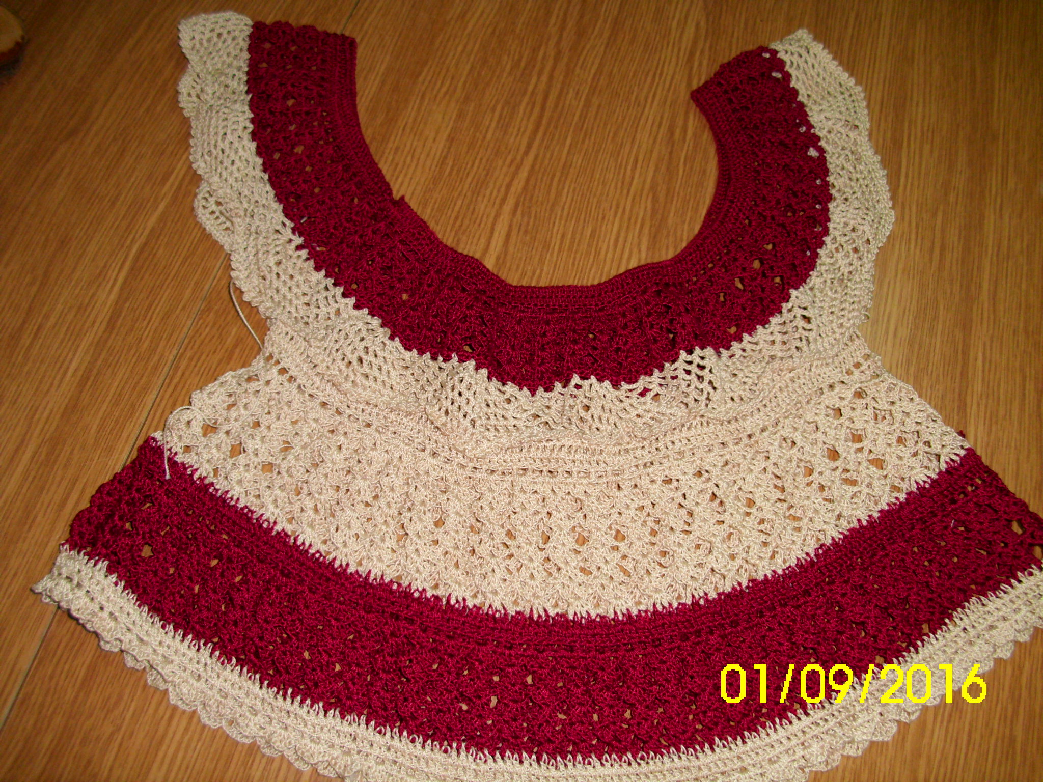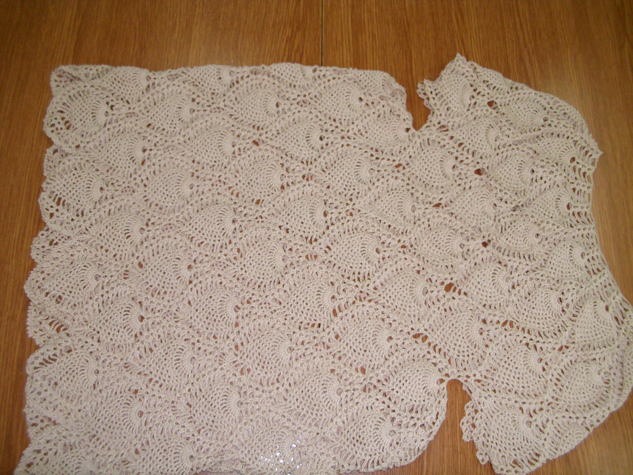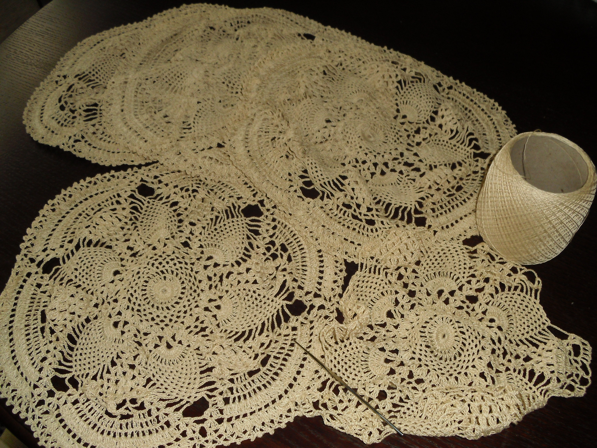 Obrus z łączonych elementów w kolorze écru rozpoczęła Maria Kwaśniak.