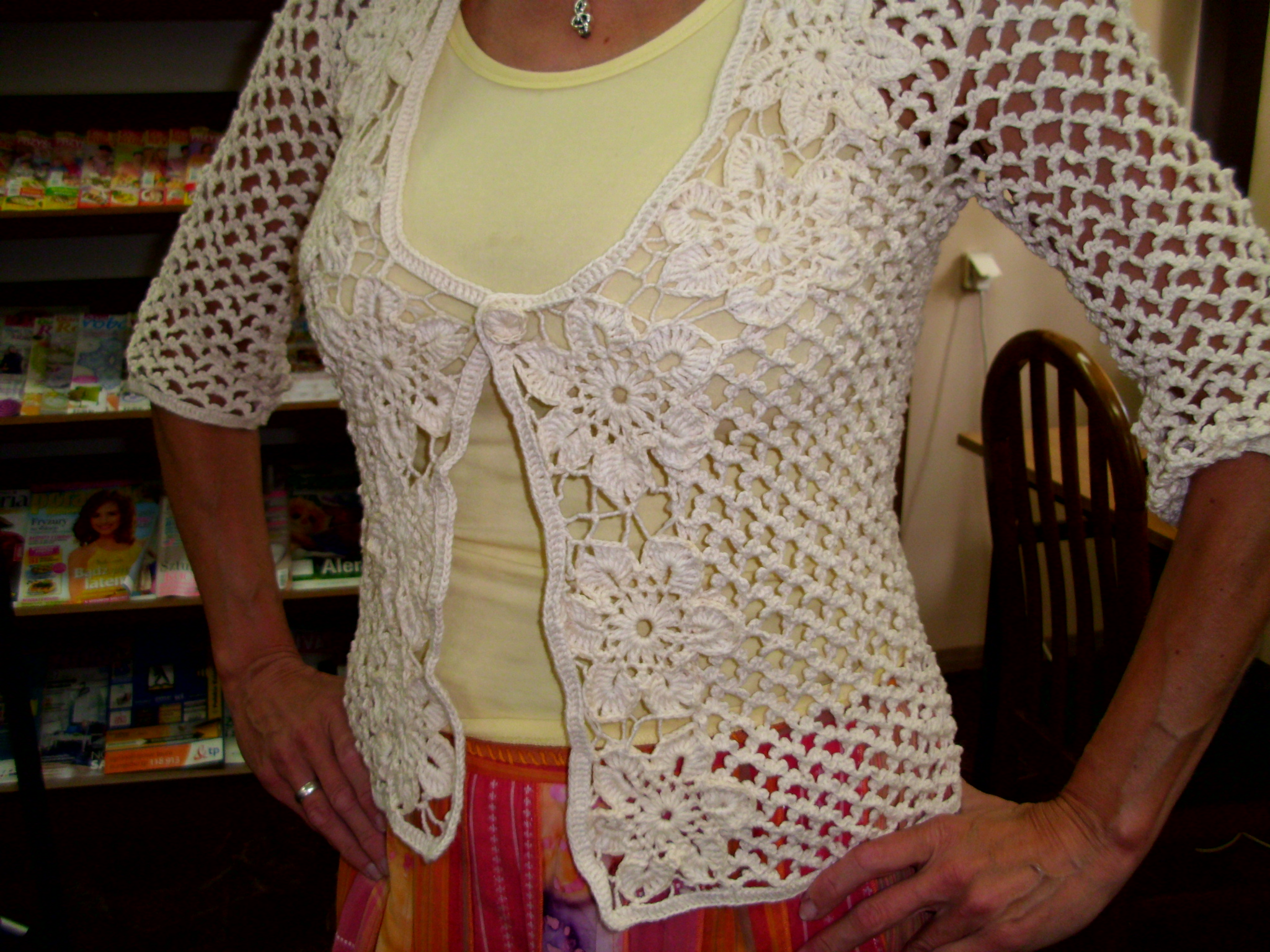 Panie z klubu robótkowego przygotowały po raz kolejny oryginalne, letnie bluzki koronkowe i sweterki z długimi rękawami.