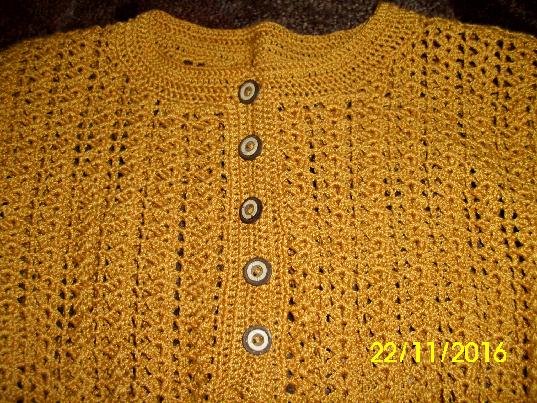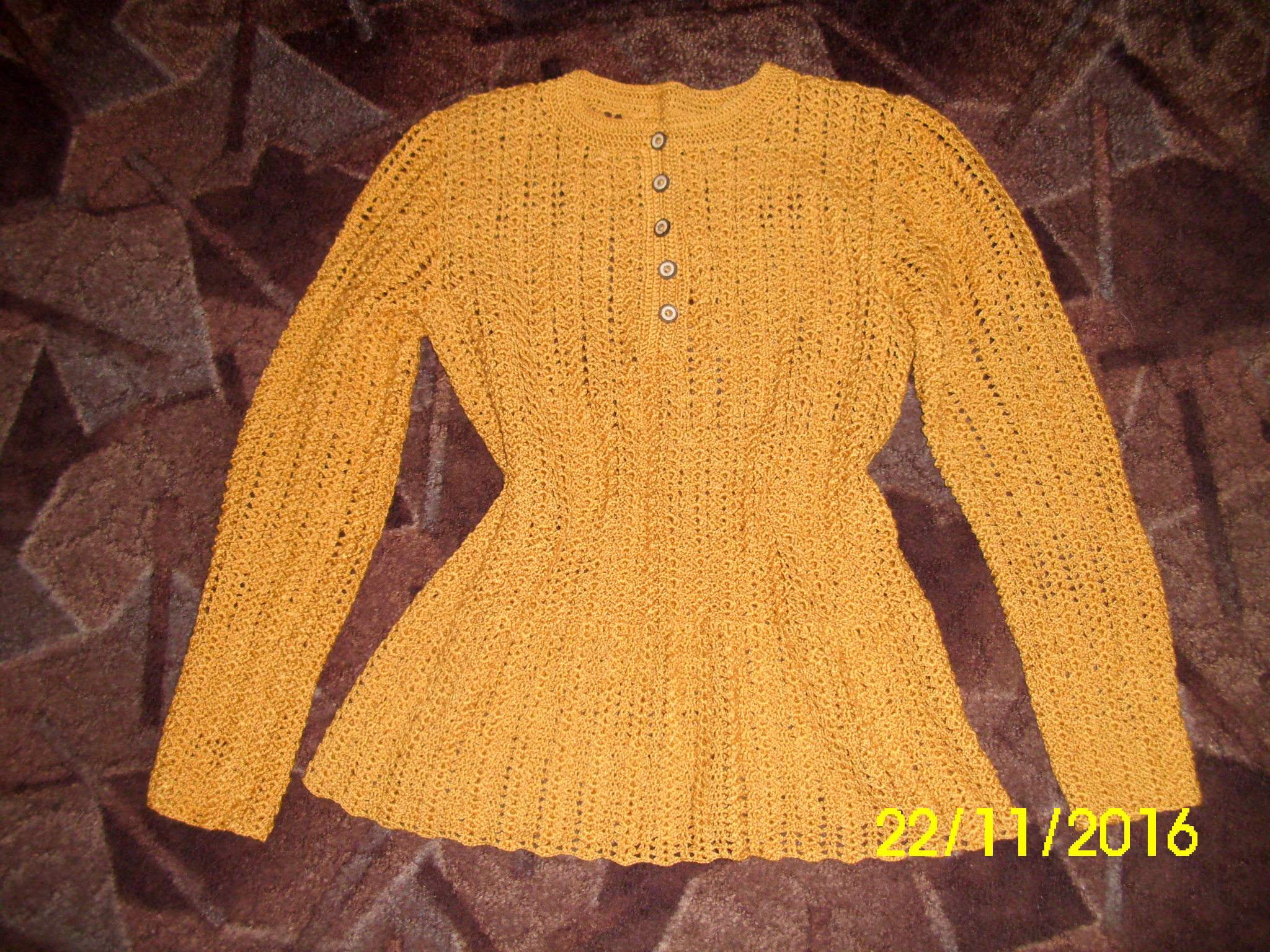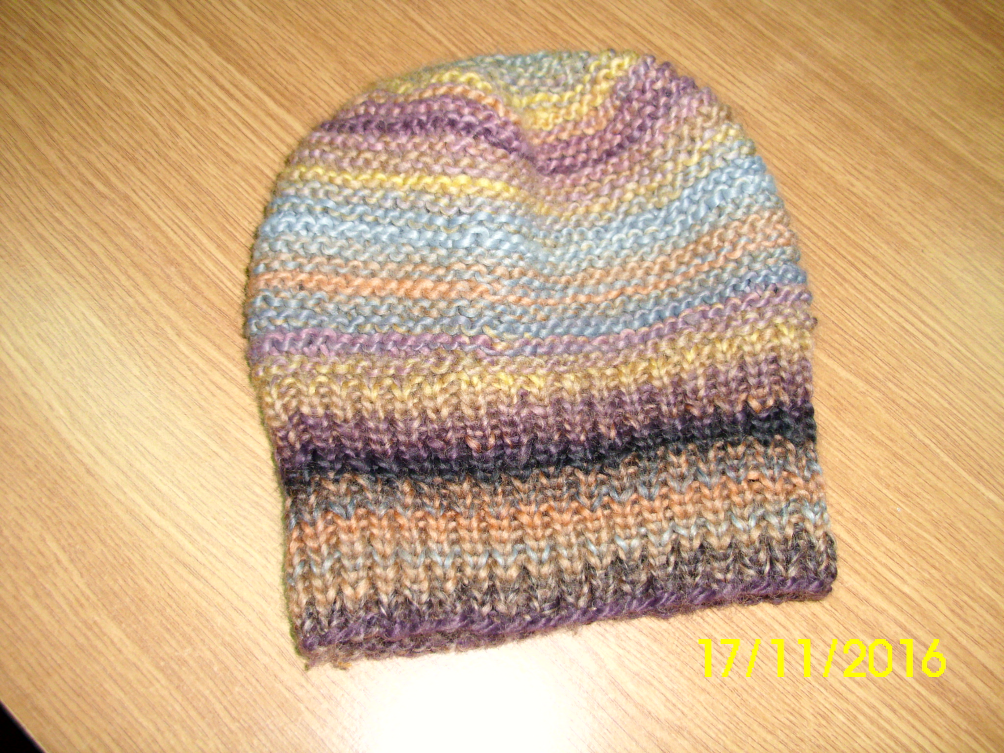 Bernadeta Bartnik: szary  sweter i bluzka z bawełnianej przędzy oraz wykonana z cieniowanej włóczki czapka.