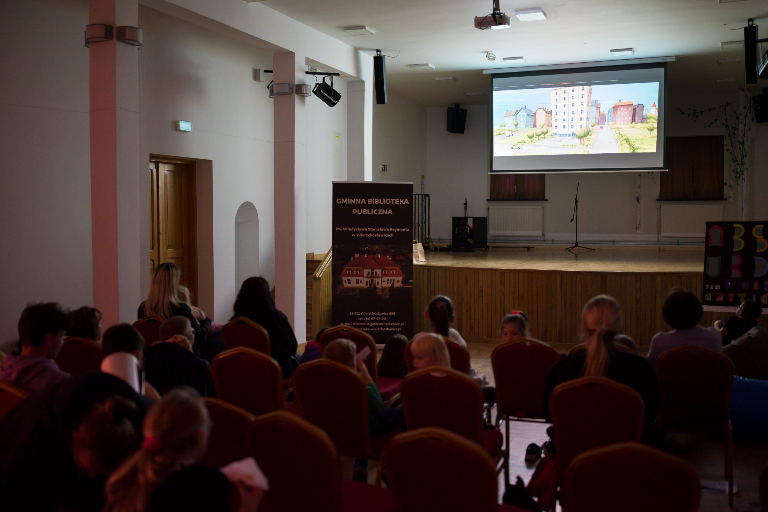 O godzinie 18:00 odbyła się projekcja filmu animowanego na podstawie książki Fridy Nilsson „Moja Mama Gorylica”. Po obejrzeniu filmu dzieci mogły wymienić się książkami, adoptować roślinę z zielonego kącika oraz poczęstować słodkościami przygotowanymi przez Koła Gospodyń Wiejskich. Wieczór zakończył relaksacyjny koncert mis kryształowych w wykonaniu pani Anny Piotrowskiej z Misja Misy.