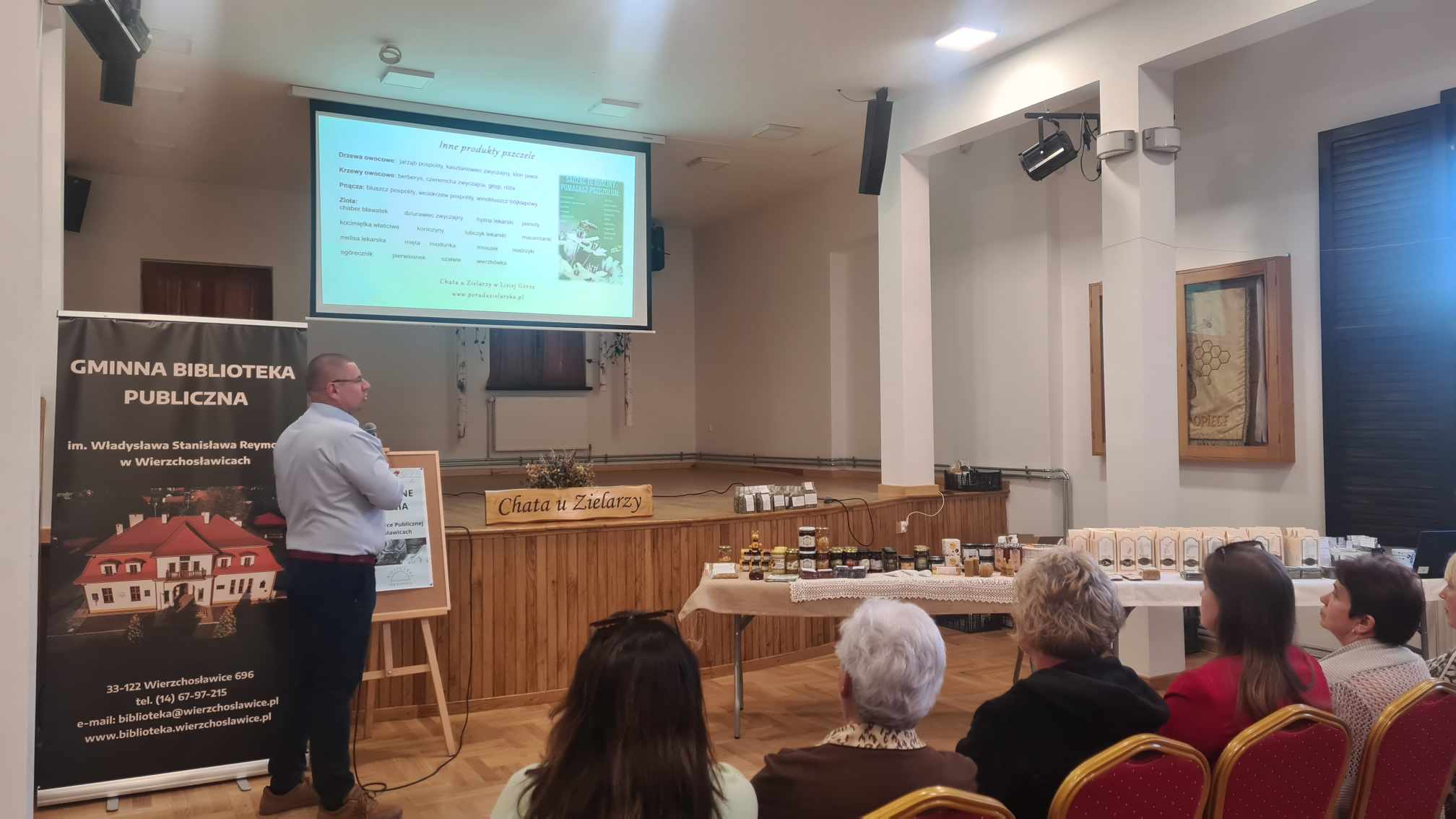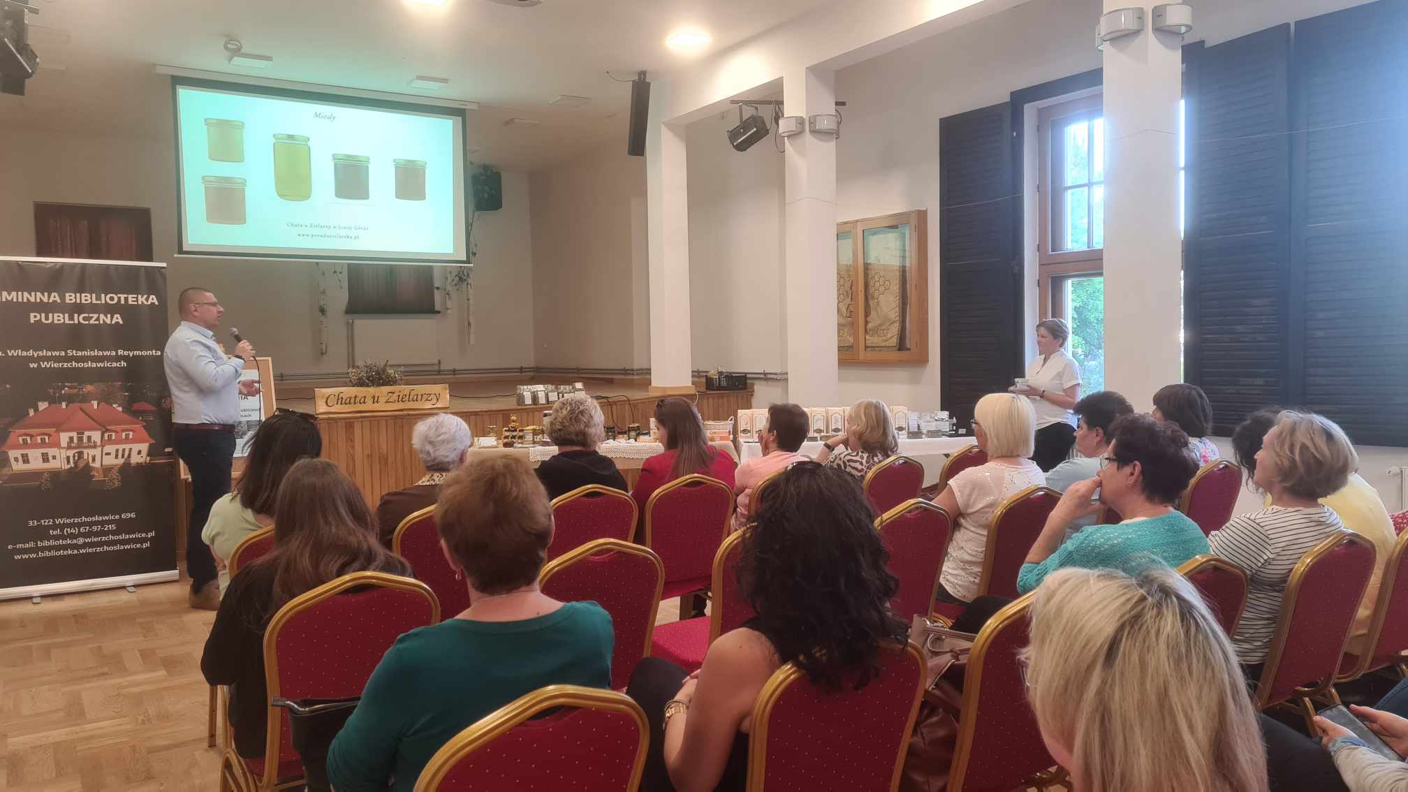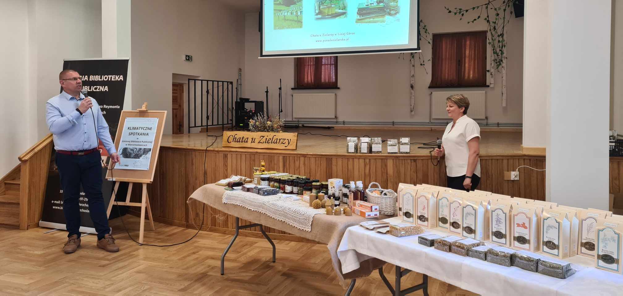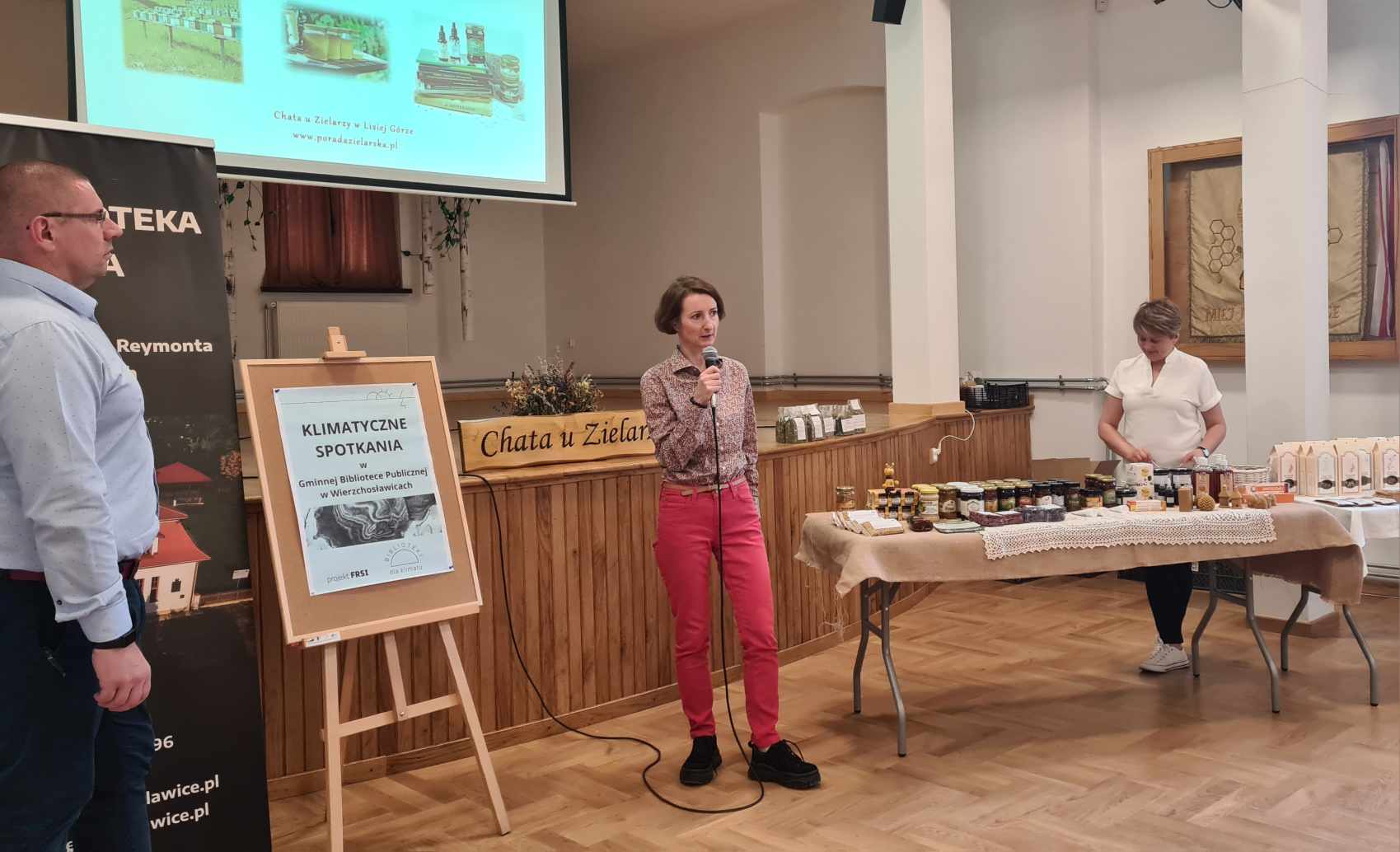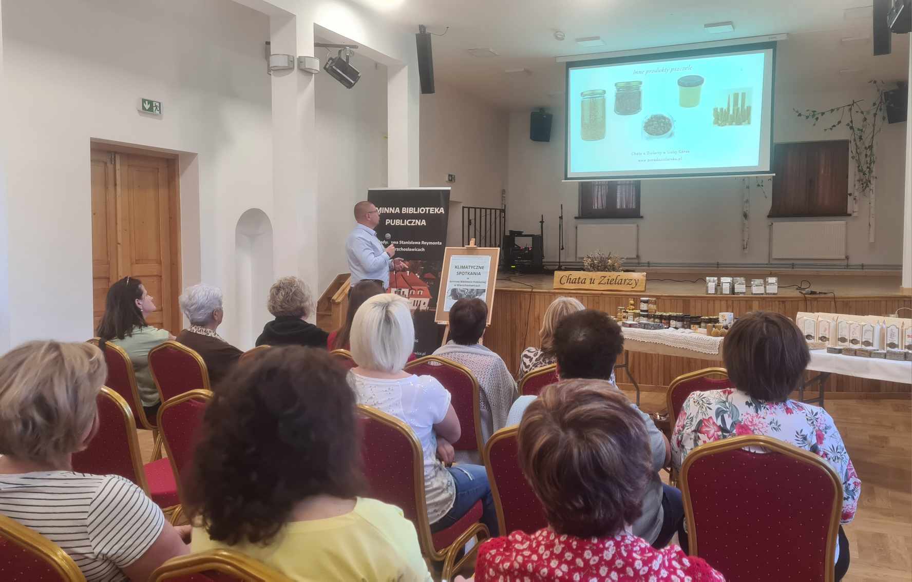 Za nami kolejne spotkanie klimatyczne w bibliotece. Tym razem nasi eksperci z „Chaty u Zielarza” – państwo Renata i Arkadiusz Ciołkowscy, poświecili swoje wystąpienie roli bioróżnorodności w łagodzeniu skutków zmian klimatycznych oraz jej funkcji dla lokalnych ekosystemów. Różnorodność gatunkowa świata roślin reguluje mikroklimat, ma również wpływ na retencje wody i ogromne znaczenie dla populacji owadów zapylających. Miałyśmy okazje poznać podczas wykładu najbardziej użyteczne rośliny miododajne i dowiedzieć się w jaki sposób zakładać łąki kwietne, które są ważnym siedliskiem dla pszczół i innych zapylaczy. Na koniec odbyła się degustacja pyłku pszczelego i rozpoznawanie rozmaitych gatunków miodu, a wszystkie uczestniczki otrzymały nasiona. Mamy nadzieje, że wkrótce w całej okolicy zakwitną nowe łąki kwietne.
