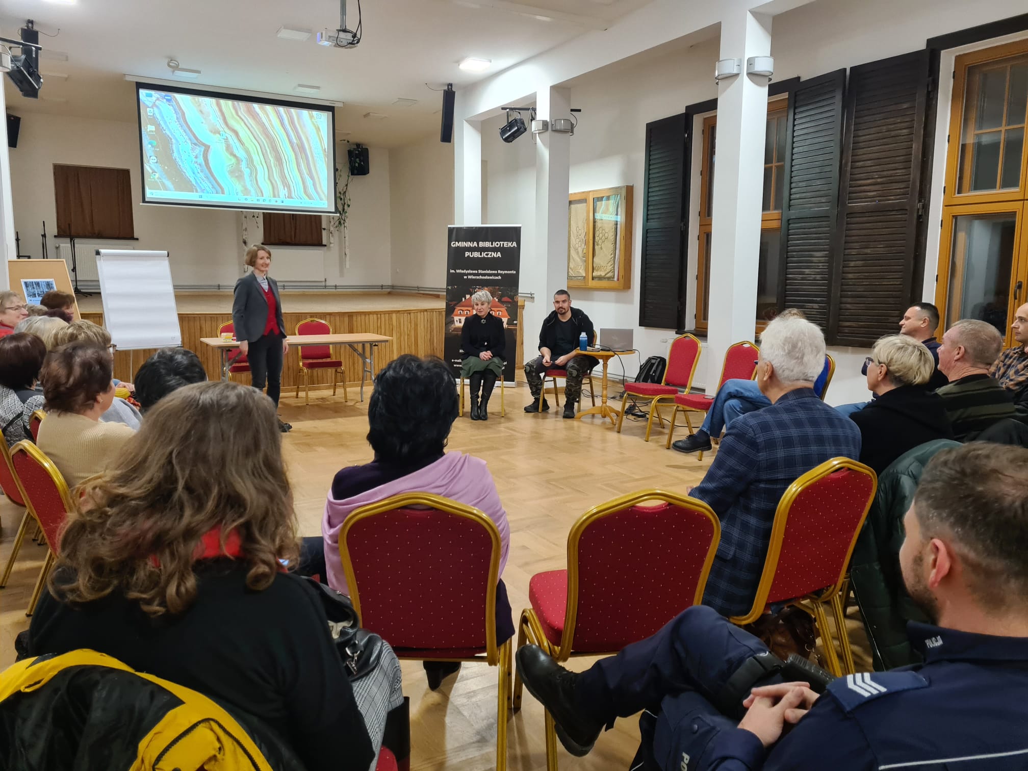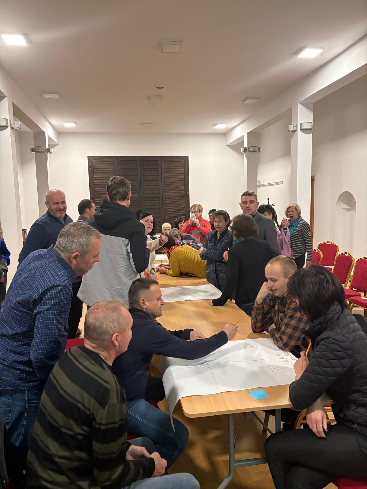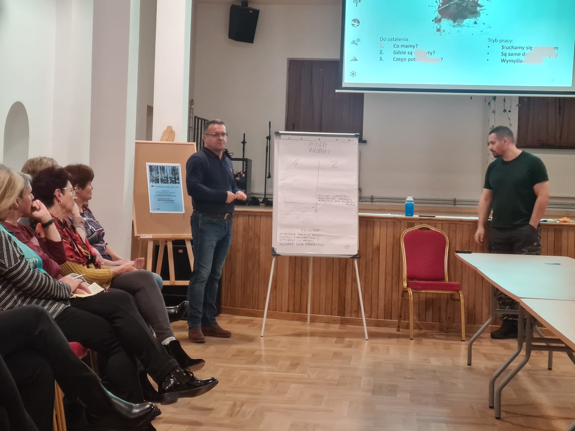 W ostatni czwartek w naszej bibliotece odbył się wyjątkowy warsztat poświęcony przygotowaniu się do sytuacji kryzysowych związanych m. in. z postępującymi zmianami klimatycznymi. Spotkanie zgromadziło zarówno mieszkańców, jak i przedstawicieli służb specjalnych i urzędu gminy, co stworzyło doskonałą okazję do wymiany doświadczeń i wypracowania wspólnych strategii działania. Spotkanie rozpoczęło się od krótkiej prezentacji prowadzonej przez socjologa Krzysztofa Jodłowskiego. Wprowadzenie obejmowało przegląd aktualnych prognoz, opis najbardziej prawdopodobnych scenariuszy oraz przywołanie konkretnych przykładów wydarzeń kryzysowych. Po prezentacji uczestnicy zostali podzieleni na grupy, które zajmowały się analizą zasobów i planowaniem działań w czterech kluczowych obszarach: pożary, zasoby wody, rolnictwo i środowisko naturalne. Wypracowane efekty zostały przedstawione na forum z podkreśleniem tematów wymagających interwencji dla zapewnienia lokalnego bezpieczeństwa. Na zakończenie mieszkańcy zasygnalizowali potrzebę organizowania większej liczby podobnych spotkań, które zwiększają świadomość społeczną i umożliwiają przygotowanie się do potencjalnych kryzysów. Szczególną u wagę zwrócono na konieczność współpracy w zakresie szybkiego reagowania na zagrożenia, między mieszkańcami a przedstawicielami służb i samorządu. Uczestnicy podkreślali, że warsztat był nie tylko interesujący, ale także motywujący do podejmowania działań na rzecz ochrony środowiska i wzmacniania lokalnej odporności na zmiany klimatu. Wszyscy zgodnie przyznali, że to dopiero początek drogi w kierunku lepszego przygotowania się na wyzwania przyszłości.