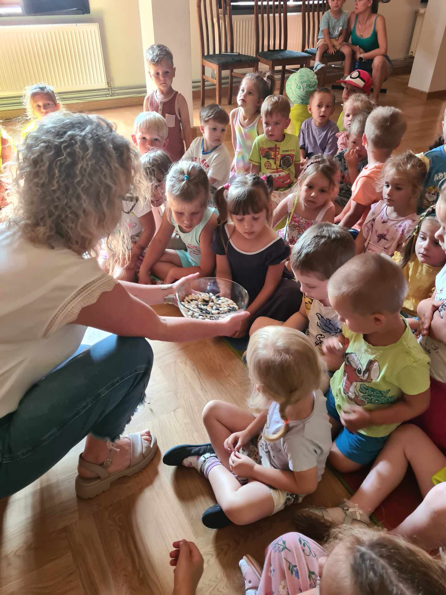 W kolejny lipcowy wtorek spotkaliśmy się z przedszkolakami w bibliotece na „Czytaniu pełnym dobrej energii”. Tym razem skupiliśmy się na tym, że choć bardzo się różnimy, czy mieszkamy w różnych miejscach na Ziemi – mamy wspólny cel – uratować naszą planetę. Nie ma znaczenia, jaki mamy kolor włosów, oczu, czy skóry, co lubi każdy z nas lub gdzie chodzi do przedszkola – wszyscy możemy być wystarczająco zaangażowani, by nauczyć się oszczędzania wody lub mądrego spożytkowania niechcianej żywności. Naszą różnorodność próbowaliśmy wyrazić poprzez kolorowe groszki.