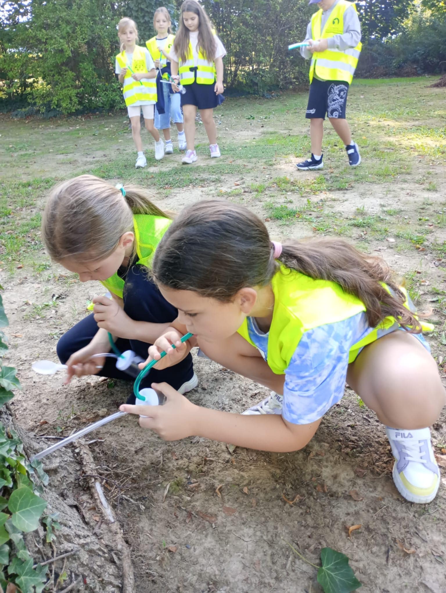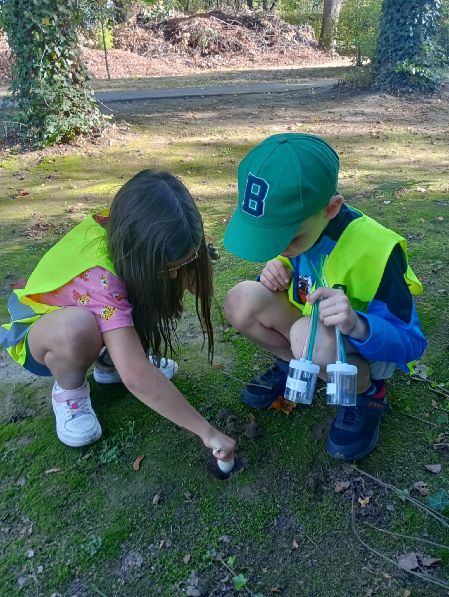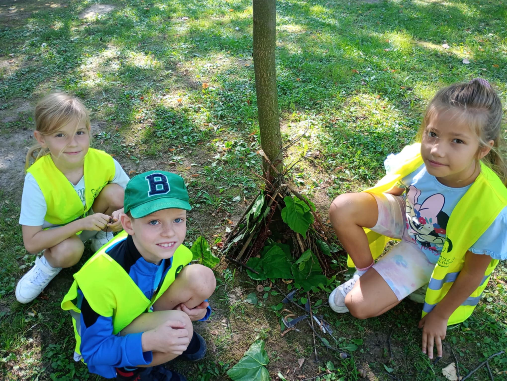 Tematem kolejnego spotkania były wije, czyli krocionogi, które pojawiły się na Ziemi wcześniej niż dinozaury! Uczniom bardzo spodobał się temat, dlatego zamienili się w inspektorów insektów, by poszukiwać małych żyjątek schowanych na ziemi, pod kamieniami, czy w korze drzew. Przy pomocy lupy, ssawek oraz łyżeczek dzieci poszukiwały wijów, ale spotkały również inne robale. Było ich sporo, dlatego dzieci w małych grupach zbudowały malutkie schronienia dla bezkręgowców i wyposażyli je w różne udogodnienia – w ten sposób powstały istne hotele dla owadów.