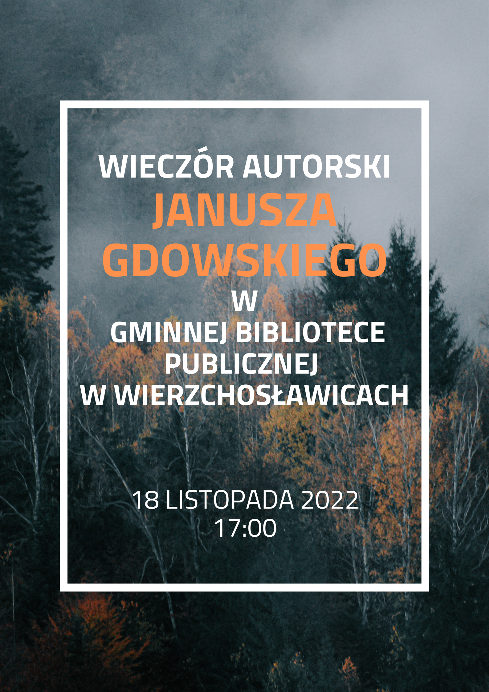 Spotkanie autorskie opublikowany wAktualności w 14 listopada 2022 przez Redaktor Udostępnij Tweet Wieczór autorski Janusza Gdowskiego w Gminnej Bibliotece Publicznej w Wierzchosławicach 18 listopada 2022 17:00