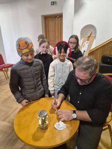 Wielką radość sprawiło dzieciom i dorosłym (!) spotkanie autorskie z Panem Grzegorzem, który rozbawił nas wesołymi historiami i bezpośrednimi interakcjami z uczniami Szkoły Podstawowej im. 100-lecia Ruchu Ludowego w Wierzchosławicach Jak się okazało związki frazeologiczne nie są tak oczywiste i zrozumiałe dla wszystkich, a język polski okazuje się czasem bardzo trudny, nie tylko dla najmłodszych