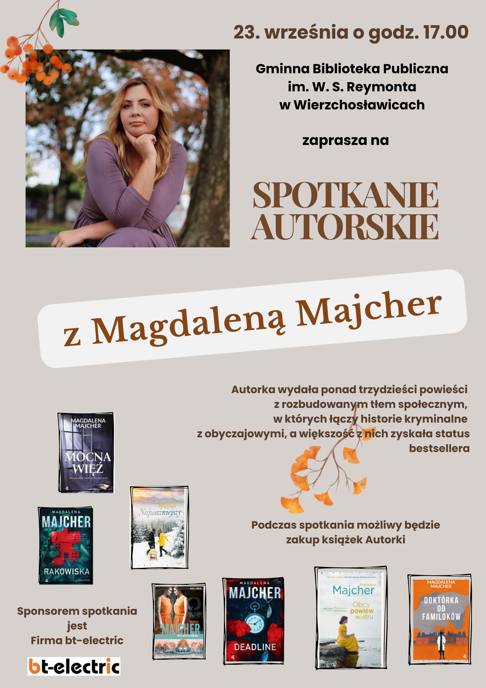 Podczas spotkania możliwy będzie zakup książek Autorki z autografem 🙂