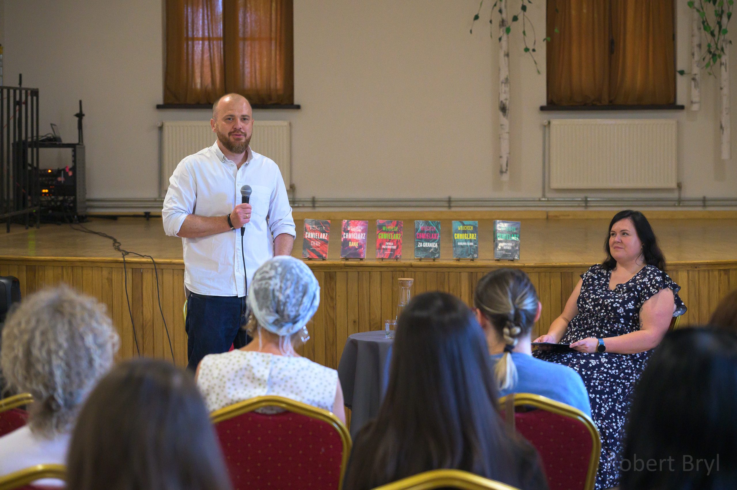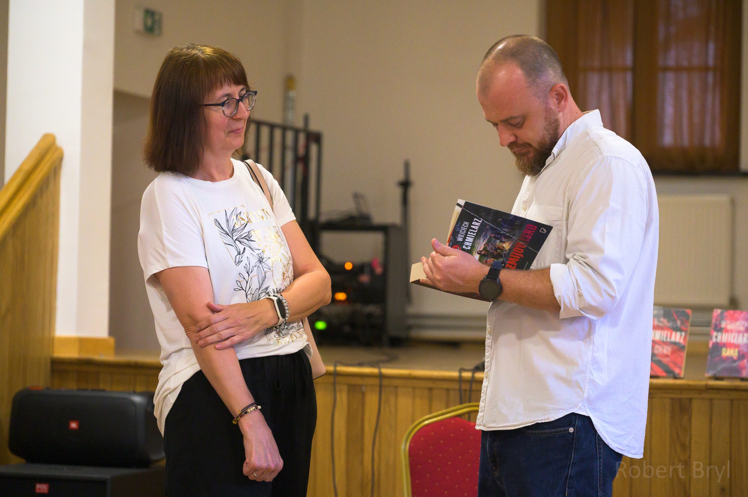 Ciekawe historie, anegdoty i rozmowy o literaturze mocno skupiły uwagę słuchaczy. Pan Wojciech podzielił się z nami wieloma osobistymi historiami, ale też opowiedział o swoich bohaterach, o tym, jak pisze, z kim się konsultuje i dlaczego sam nie chciałby napisać scenariusza filmowego. Czytelnicy mogli też otrzymać dedykację od Autora w swoich ulubionych kryminałach.