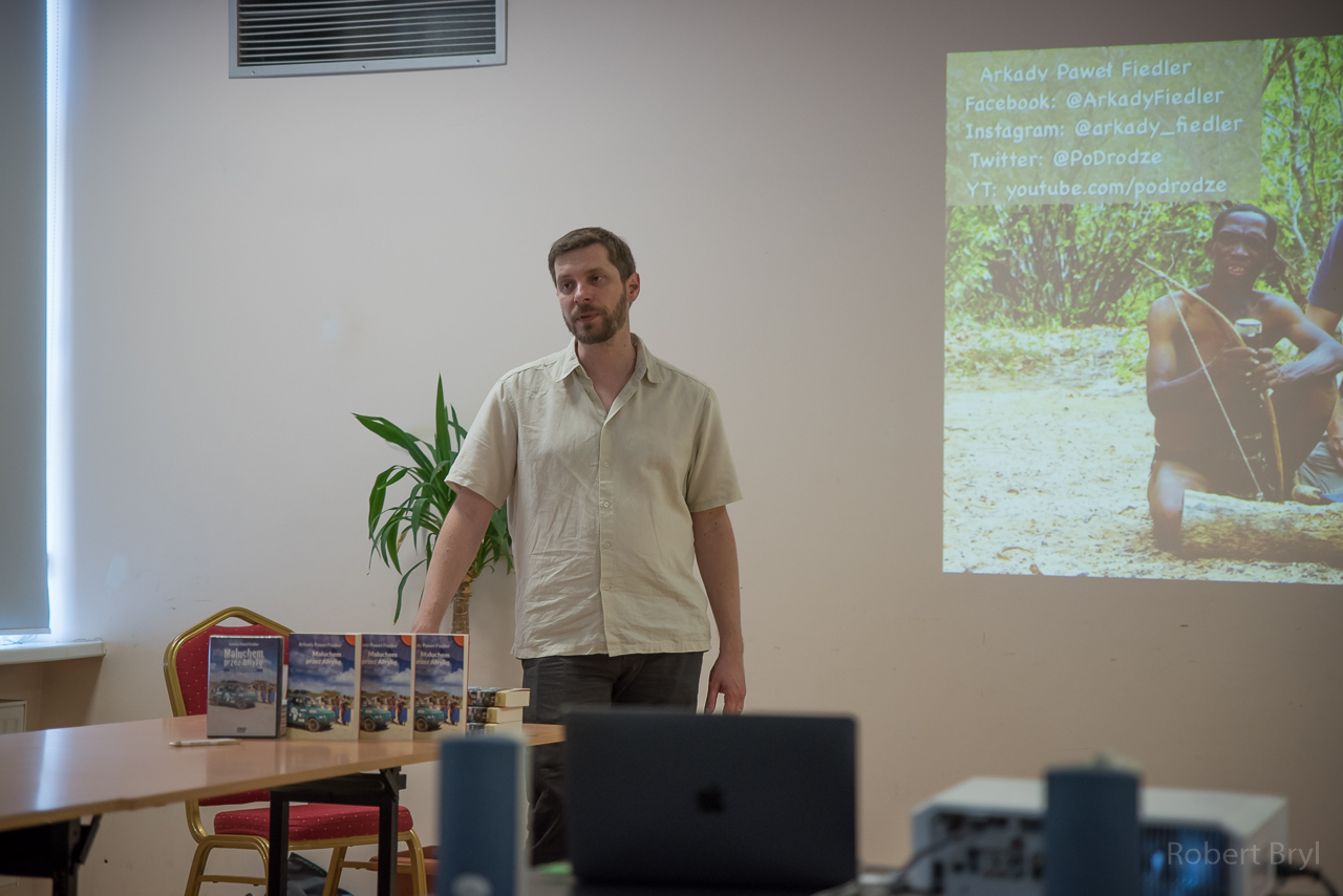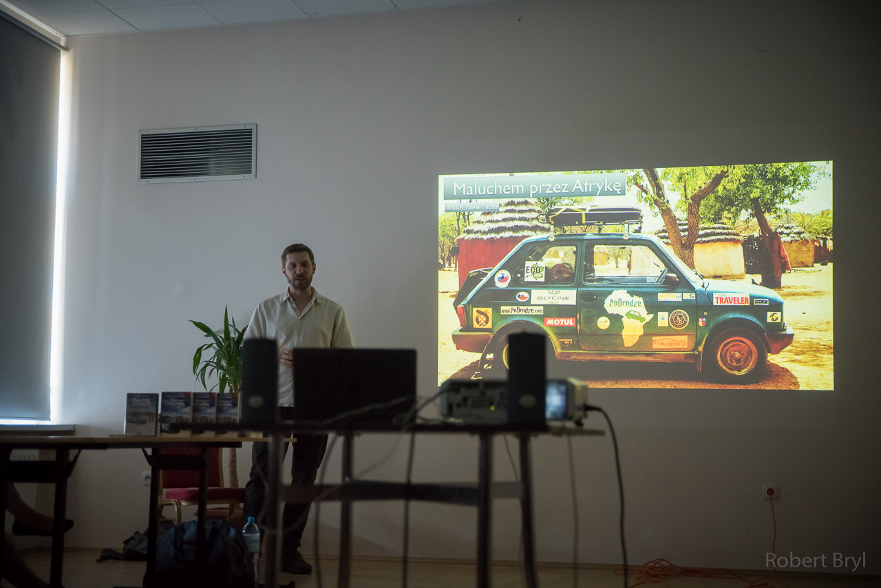 10 czerwca w Gminnym Centrum Kultury w Wierzchosławicach gościliśmy niezwykłego podróżnika Arkadego Pawła Fiedlera, który z pasją kontynuuje rodzinne tradycje, choć na swój sposób. W ramach projektu PoDrodze zrealizował już cztery samochodowe wyprawy – jedną po Polsce, dwie po Afryce i jedną po Azji. Nam opowiedział o swojej podróży fiatem 126p po Afryce. Jego wciągająca relacja – ubarwiona wieloma fotografiami i nagraniami video – pozwoliła uczestnikom spotkania choć na chwilę przenieść się na inny kontynent, poczuć częściowo trudy tak nietypowej eskapady, a jednocześnie podziwiać wspaniałe afrykańskie krajobrazy. Arkady Fiedler w ciągu 3,5 miesiąca przejechał „maluchem” ponad 16 tysięcy km, odwiedzając 11 krajów (od Egiptu po RPA), wszędzie wzbudzając ogromne zainteresowanie mieszkańców. Niezwykłe auto było świetnym elementem integracyjnym w każdym kraju, mężczyźni chcieli je kupić, kobiety dostać w prezencie, a dzieci po prostu fascynowało. W czasie podróży zrealizowano serial, który został wydany na płytach DVD, a także opublikowany na kanale YouTube, na którym można obejrzeć również filmy z innych wypraw: www.youtube.com/podrodze.