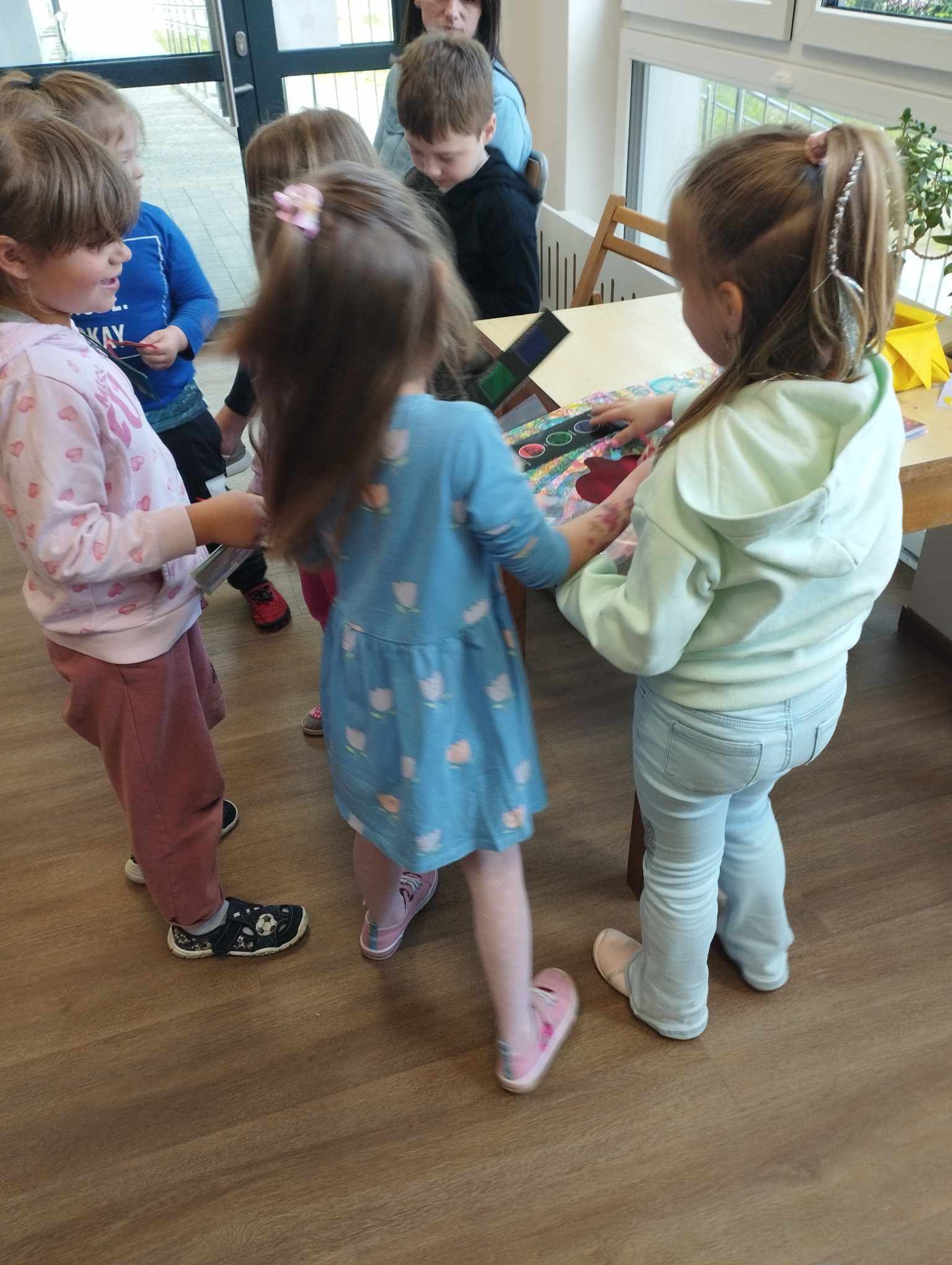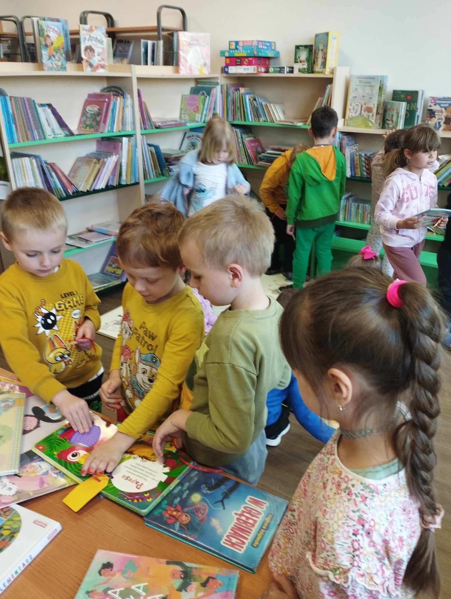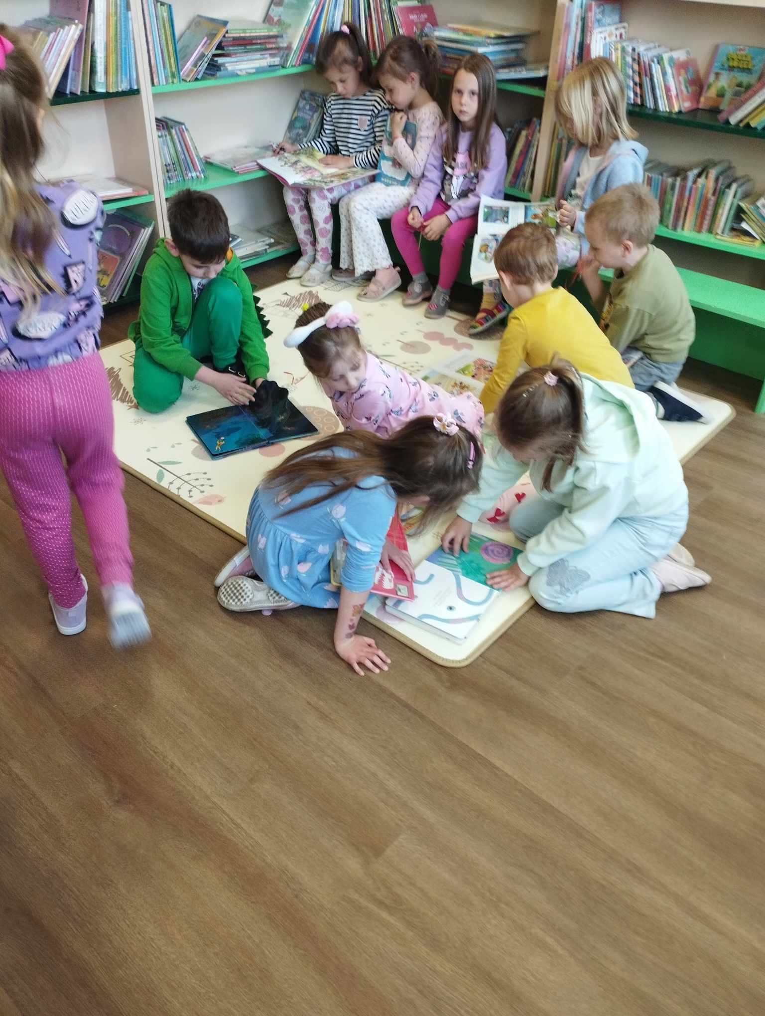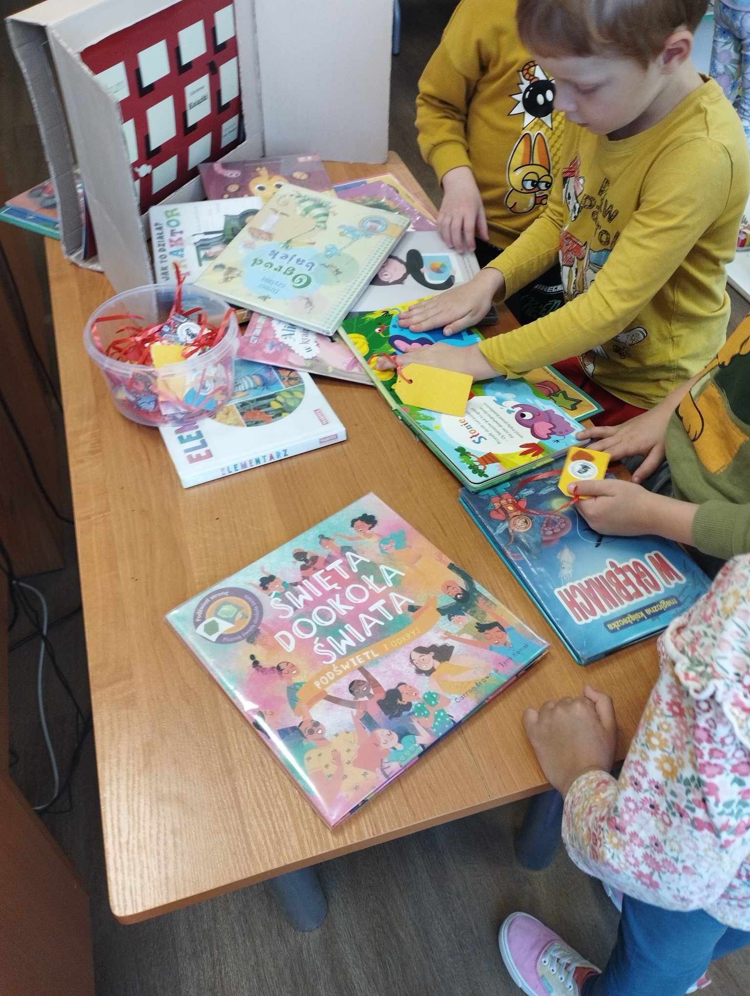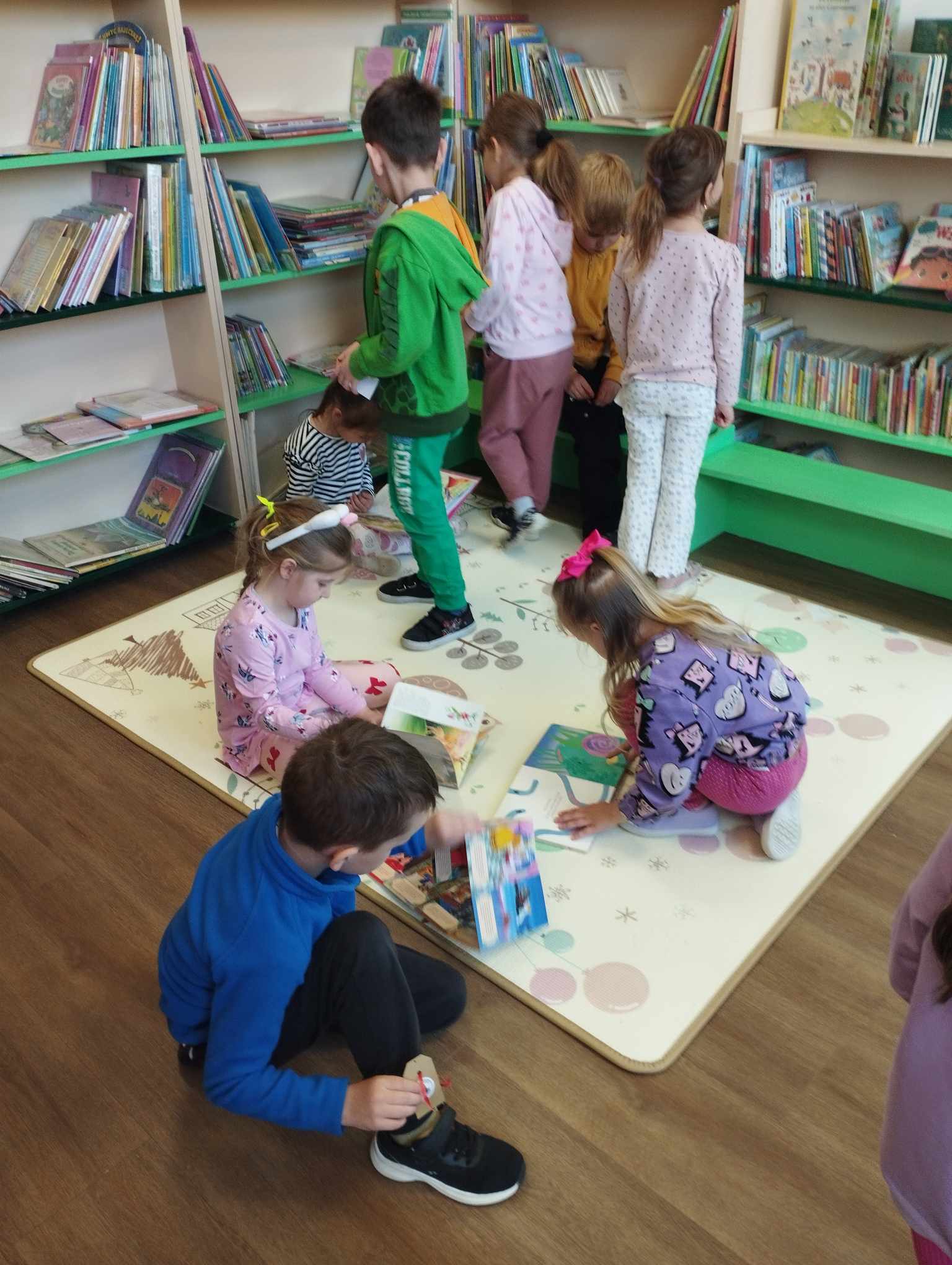 Poniedziałkowe spotkanie z dziećmi z kl. „0” ze Szkoły Podstawowej w Łętowicach, skupione było wokół tematu książki i biblioteki. Dzieci chętnie przejrzały książeczki i wysłuchały bajki kamishibai „Książka”.