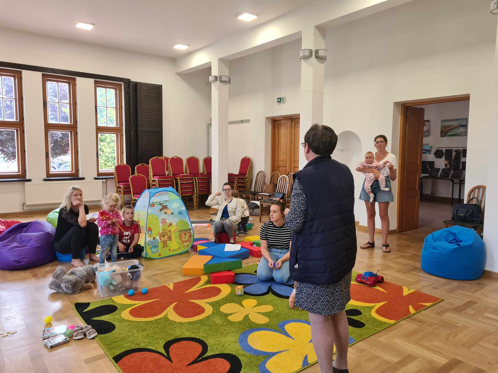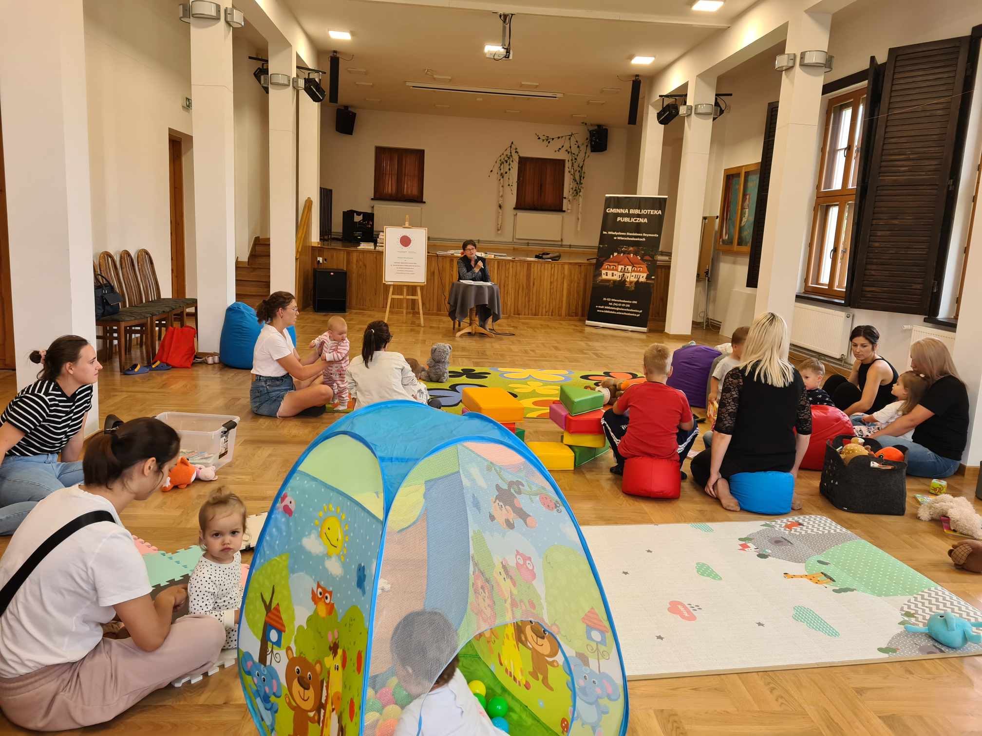 Wczoraj – 08.08.2023 r., odbyło się kolejne spotkanie zorganizowane w ramach projektu „My- to Mamy z biblioteki”. Ekspertką tego popołudnia była pani Grażyna Sęk – nauczycielka i logopedka, która w profesjonalny sposób zapoznała rodziców z etapami rozwoju mowy, wadami wymowy wieku dziecięcego oraz przyczynami i rodzajami zaburzeń językowych. Pani Logopedka zaprezentowała też jak wygląda przesiewowe badanie logopedyczne w początkowym etapie edukacji szkolnej, oraz zwróciła szczególną uwagę rodziców na to, jak ważne jest, aby czytać dzieciom każdego dnia już od momentu życia płodowego, ponieważ ma to ogromny wpływ na ich mowę i zasób słownictwa. Zaprezentowałyśmy także ofertę z naszymi książkami logopedycznymi.