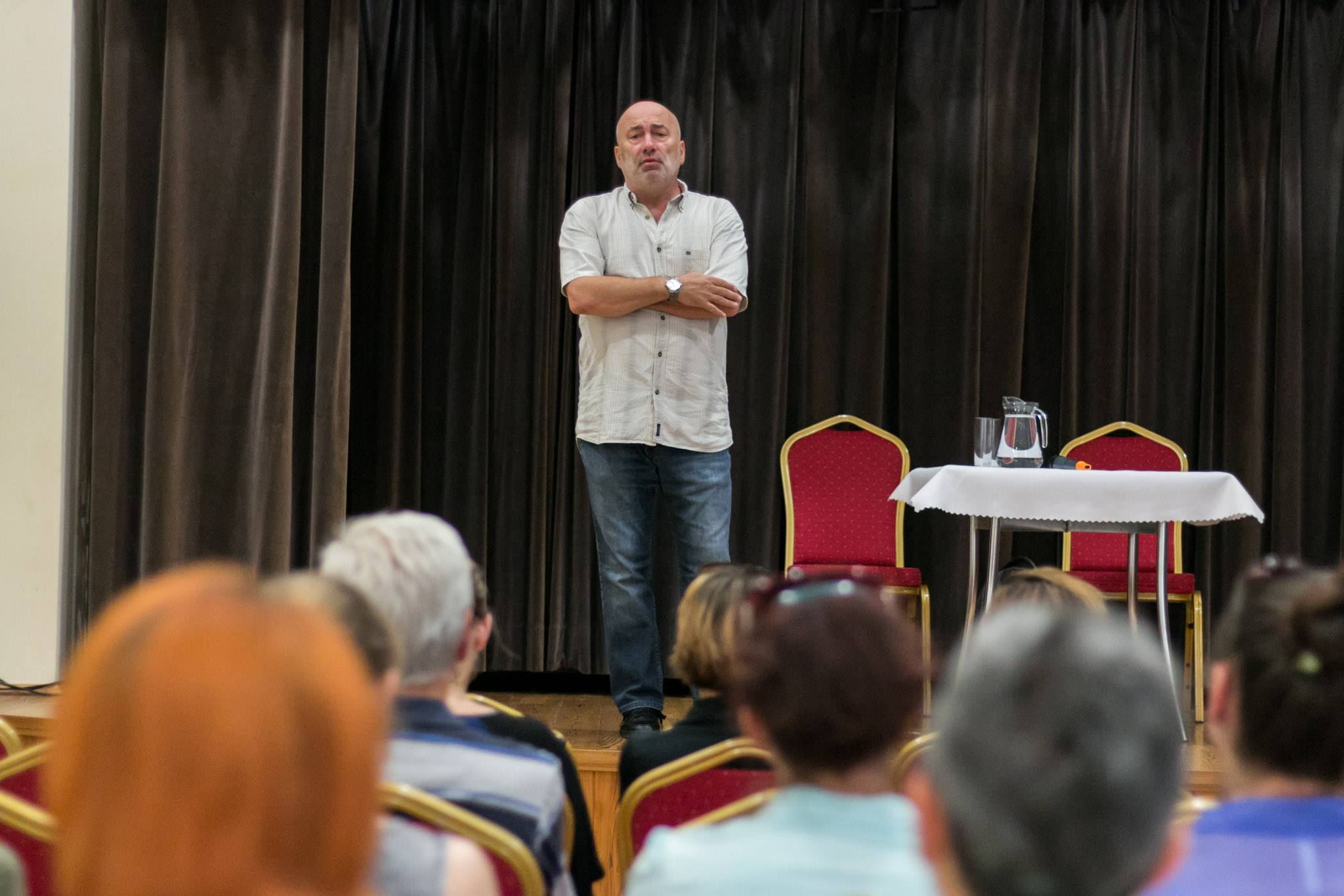 11 czerwca w Centrum Kultury Wsi Polskiej w Wierzchosławicach gościliśmy znanego pisarza Sławomira Kopra, jednego z najpopularniejszych obecnie autorów książek historycznych. Sławomir Koper w swoich książkach skupia się – nietypowo dla historyka – nie na datach i ważnych, oficjalnych wydarzeniach, ale na życiu prywatnym bohaterów, na anegdotach, z pozoru błahych informacjach i faktach. Zabawny sposób snucia wielowątkowych opowieści, ubarwiony wieloma skandalizującymi ciekawostkami sprawił, że spotkanie było wyjątkowo ciekawe. Autor niezwykle interesująco opowiadał o kulisach swojej pracy, a zwłaszcza o sposobach zdobywania materiałów i potyczkach z Instytutem Pamięci Narodowej. Ze słuchaczami podzielił się także niepublikowanymi dotąd anegdotkami z życia opisywanych przez siebie bohaterów. Opowiedział również o spotkaniach z czytelnikami, relacjach z wydawcami, a także z innymi historykami, którzy często próbują deprecjonować jego twórczość. Uczestnicy spotkania mogli na miejscu kupić książki naszego gościa, które autor chętnie podpisywał.