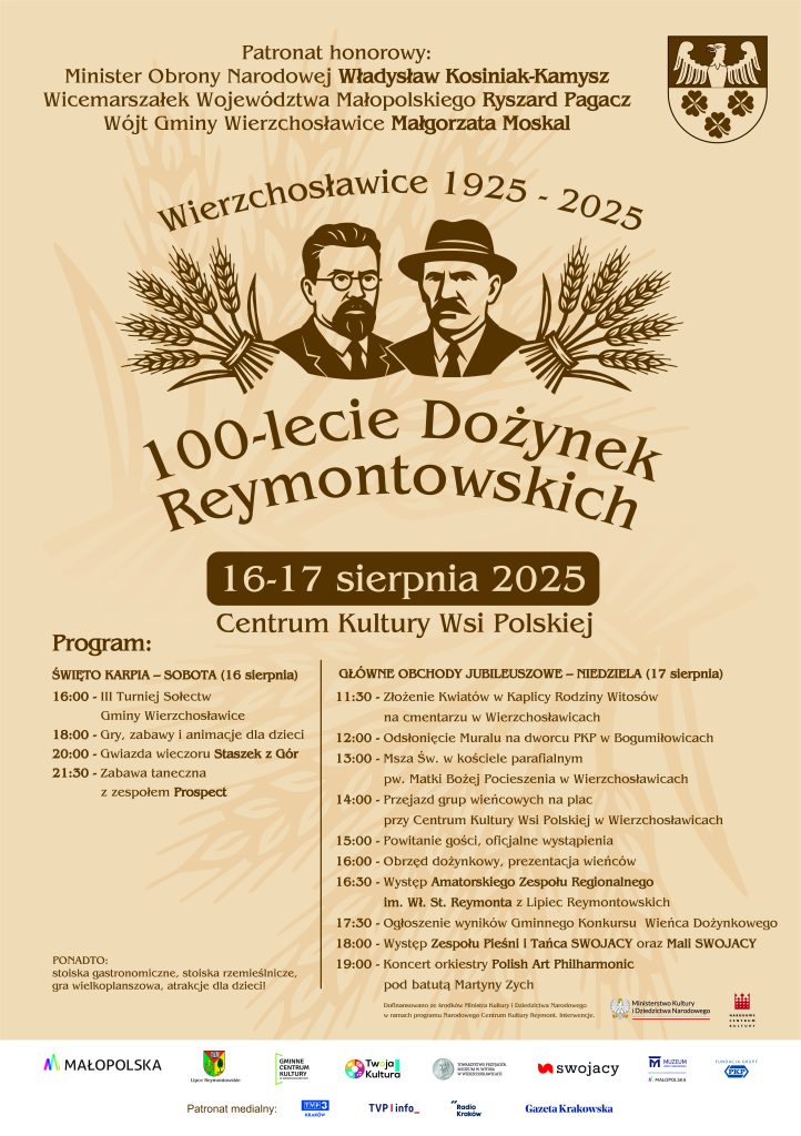 W roku 1925 do Wierzchosławic na Dożynki, na zaproszenie Wincentego Witosa, przyjechał Władysław Reymont, świeżo upieczony laureat literackiej Nagrody Nobla za powieść „Chłopi”. Tegoroczne dożynki będą – w dużej mierze – oddaniem hołdu tamtym, historycznym wydarzeniom.