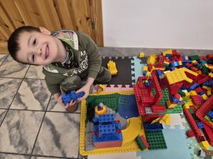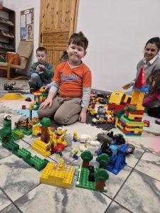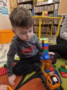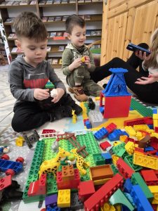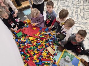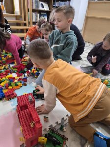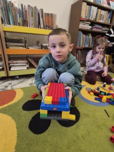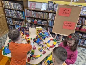 A ponieważ nie ma ograniczeń co do zabawy klockami Lego, dzisiaj w bibliotece swoją wyobraźnię uruchomiły dzieci i dorośli 🙂 Doskonałym początkiem pobudzającym kreatywność był popbook związany z historią Kubusia Puchatka. Nie ma nic piękniejszego niż historie wymyślone i opowiedziane przez dzieci. Dzisiaj właśnie książka oraz klocki dały taką możliwość przedszkolakom z „Niepublicznego Przedszkola Słoneczko” w Wierzchosławicach. Zobaczcie sami, jak piękne historie zilustrowali klockami Lego nasi goście.